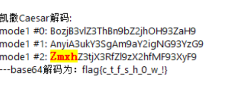 的WP才发现可以一键解密出来,是先凯撒了再base64!我们也可以慢慢还原算法,我不这样写了。