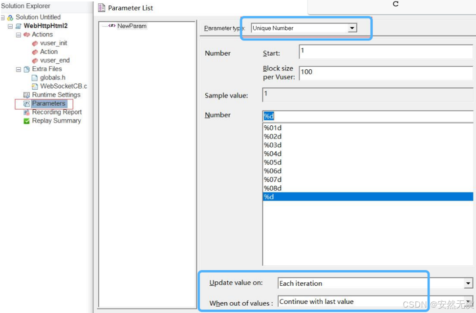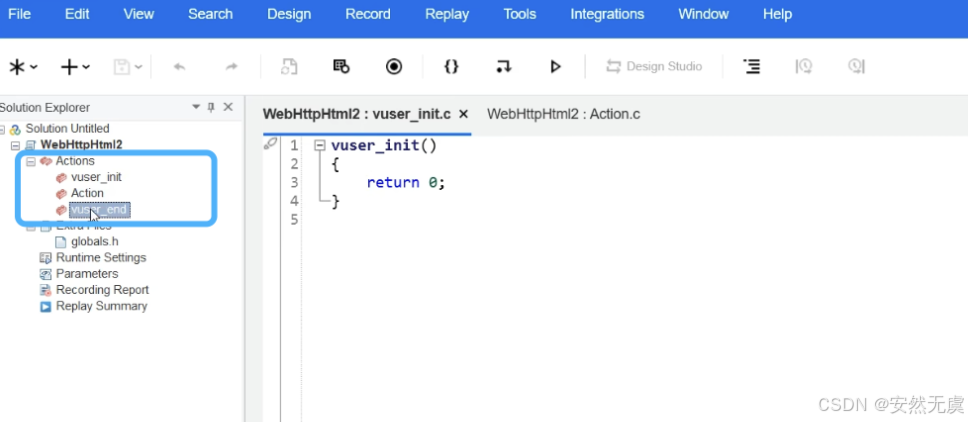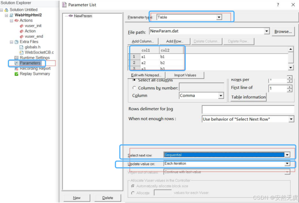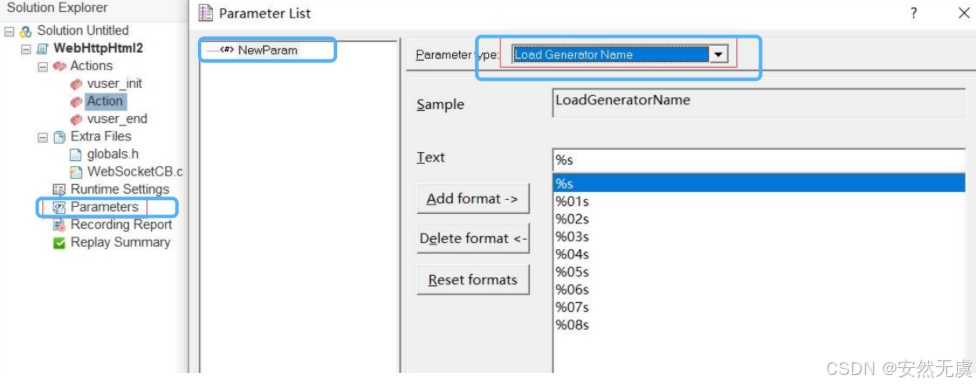 首先在 虚拟用户生成器 当中新建一个 解决方案和脚本: