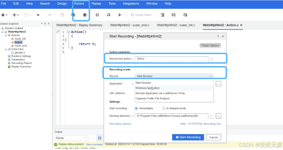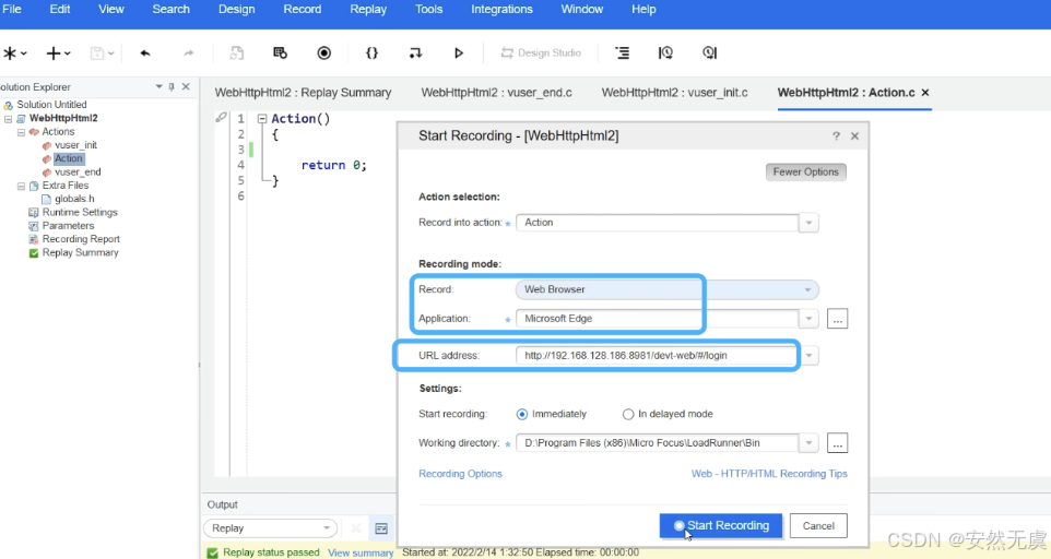 - 在LoadRunner中进行录制配置
