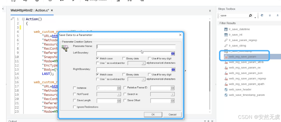这时候我们需要使用 web_reg_save_param()函数:
