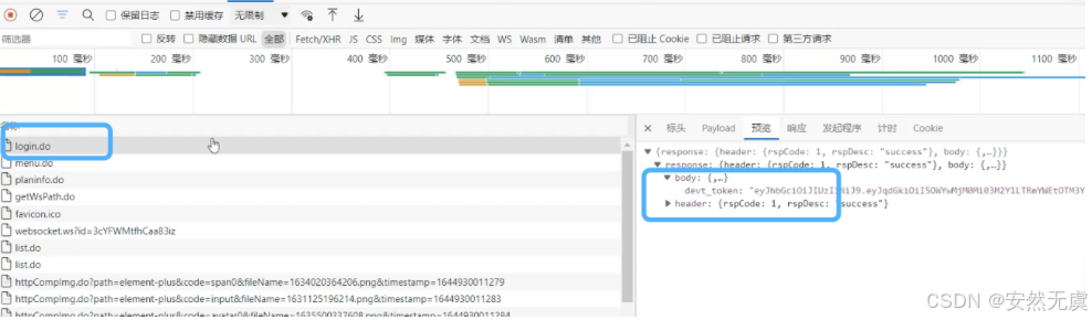 比如这里是, 后续请求需要 登陆请求 返回的 devt_token值: