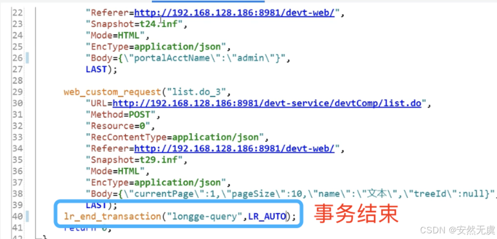 - 结束事务: lr_end_transaction()