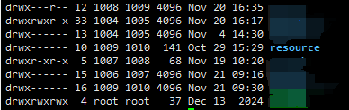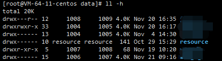 ls -ld /data/resource # 记录UID(第三列)和GID(第四列)