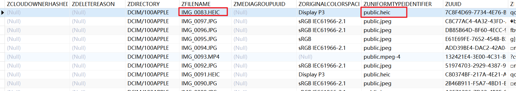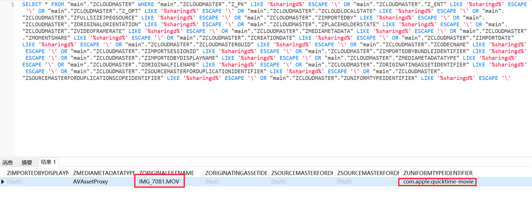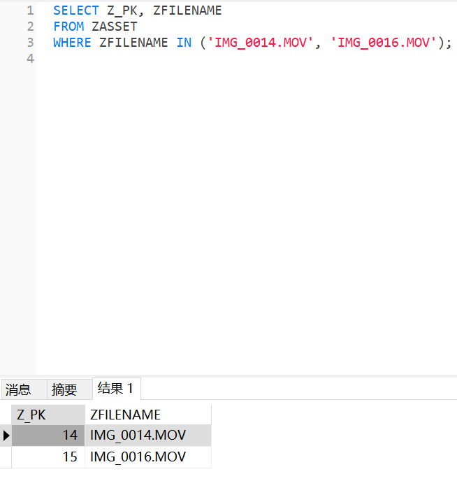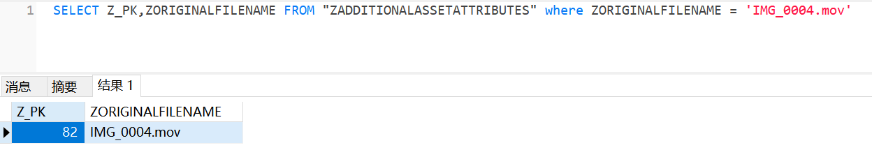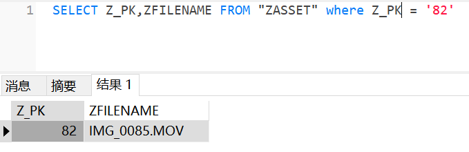 视版本可能出现在 ZASSET 或 ZADDITIONALASSETATTRIBUTES 中,例如: