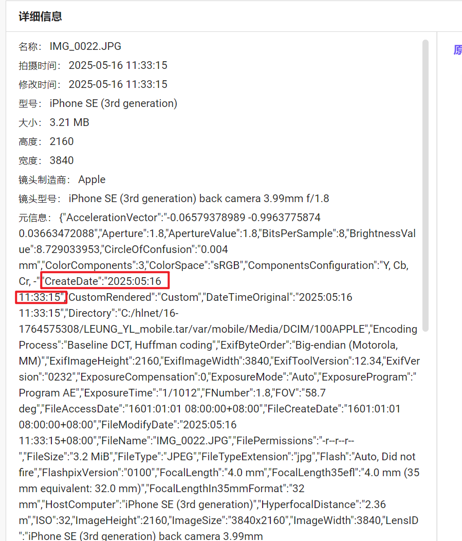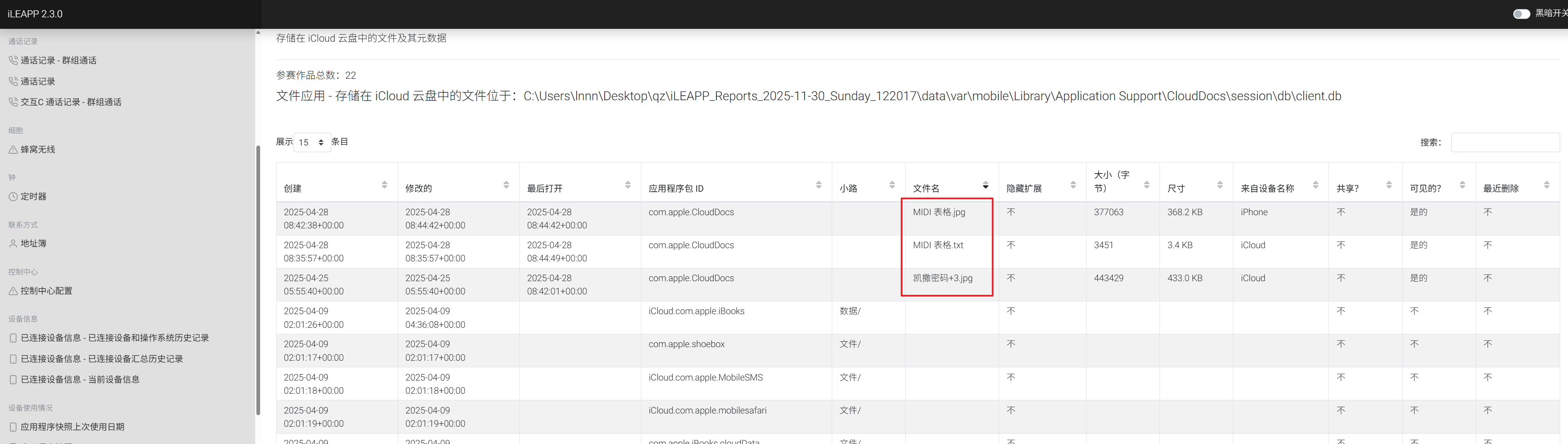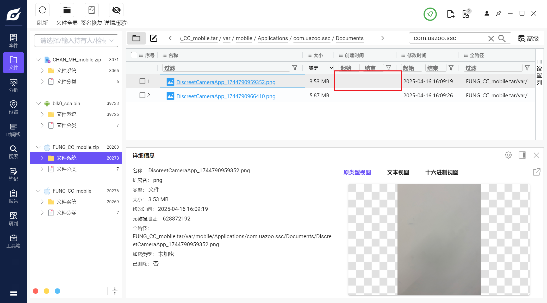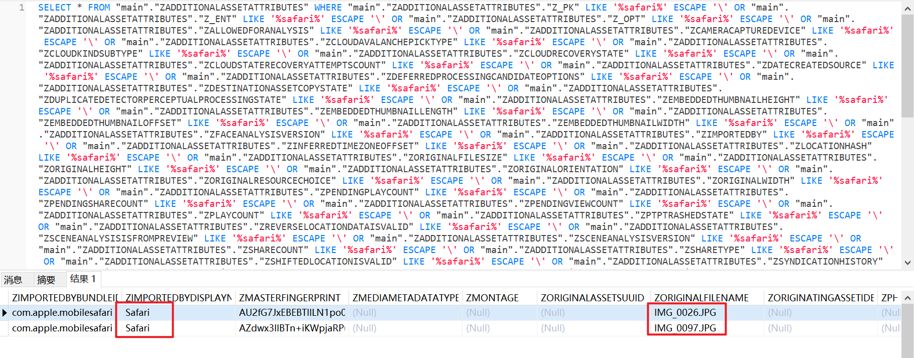但是iterationC.db文件里只记录了是否存在交互、如何交互,没有记录具体传输了什么文件,因此需要配合Photos.sqlite来找到具体的文件