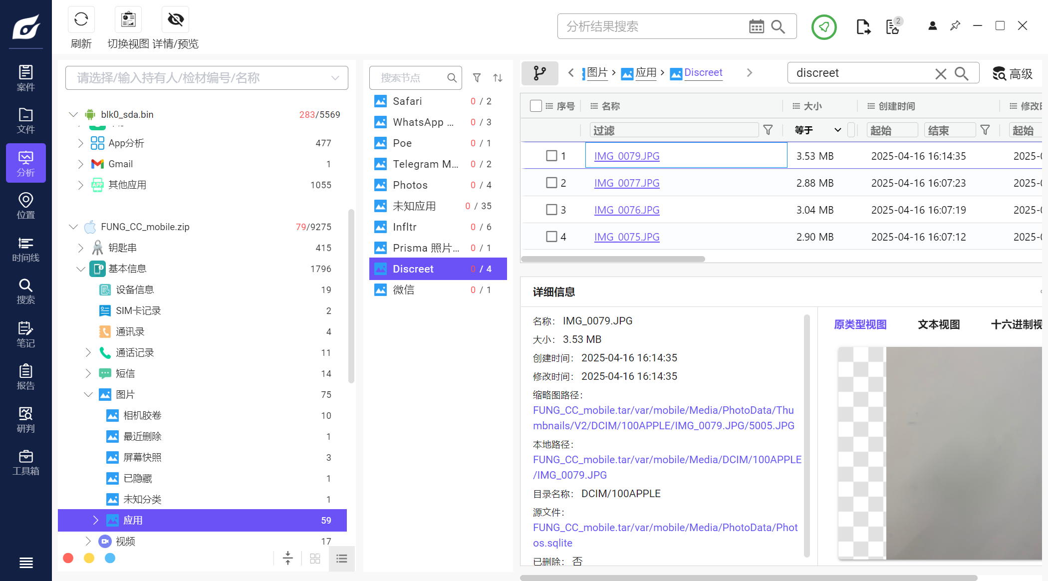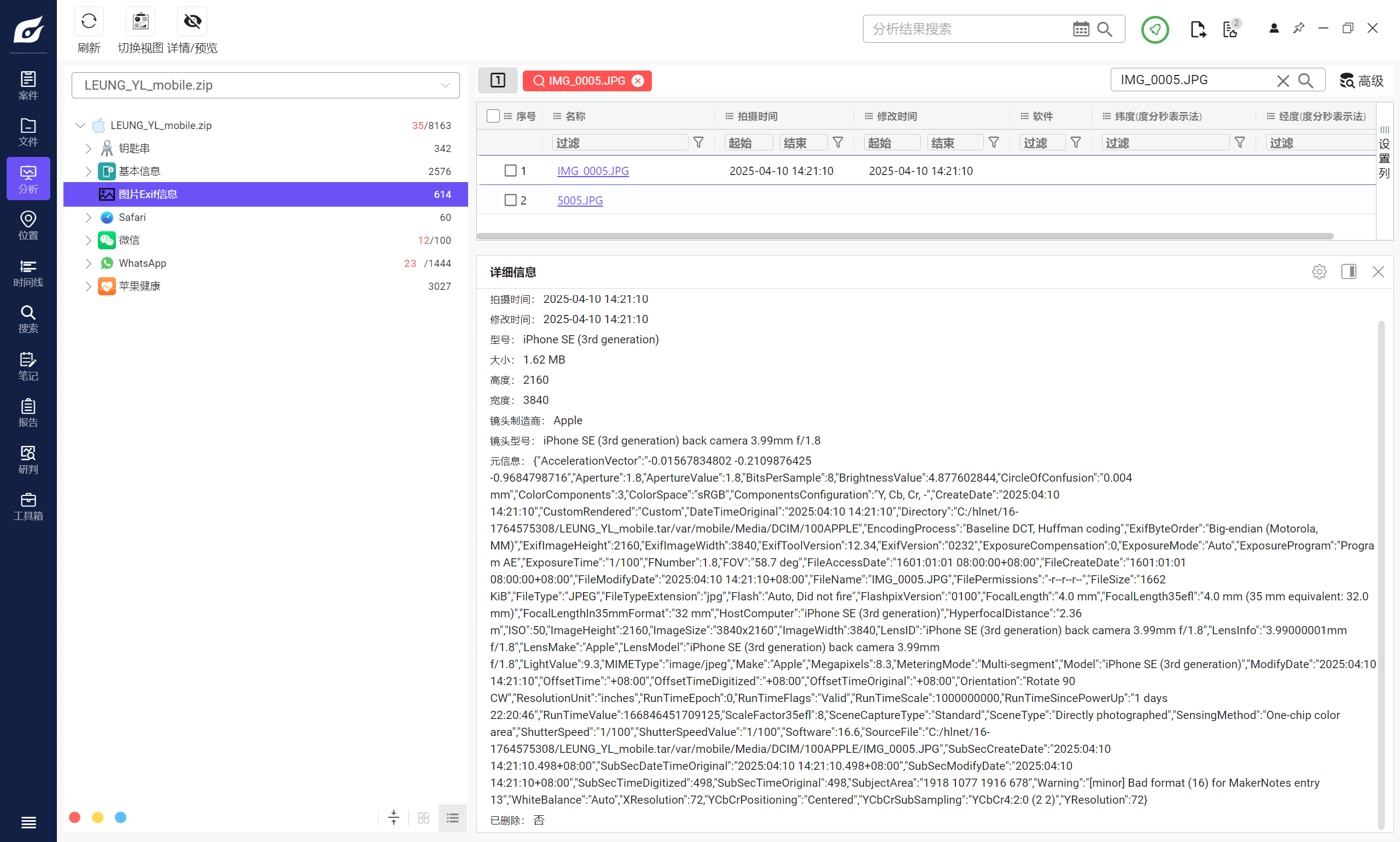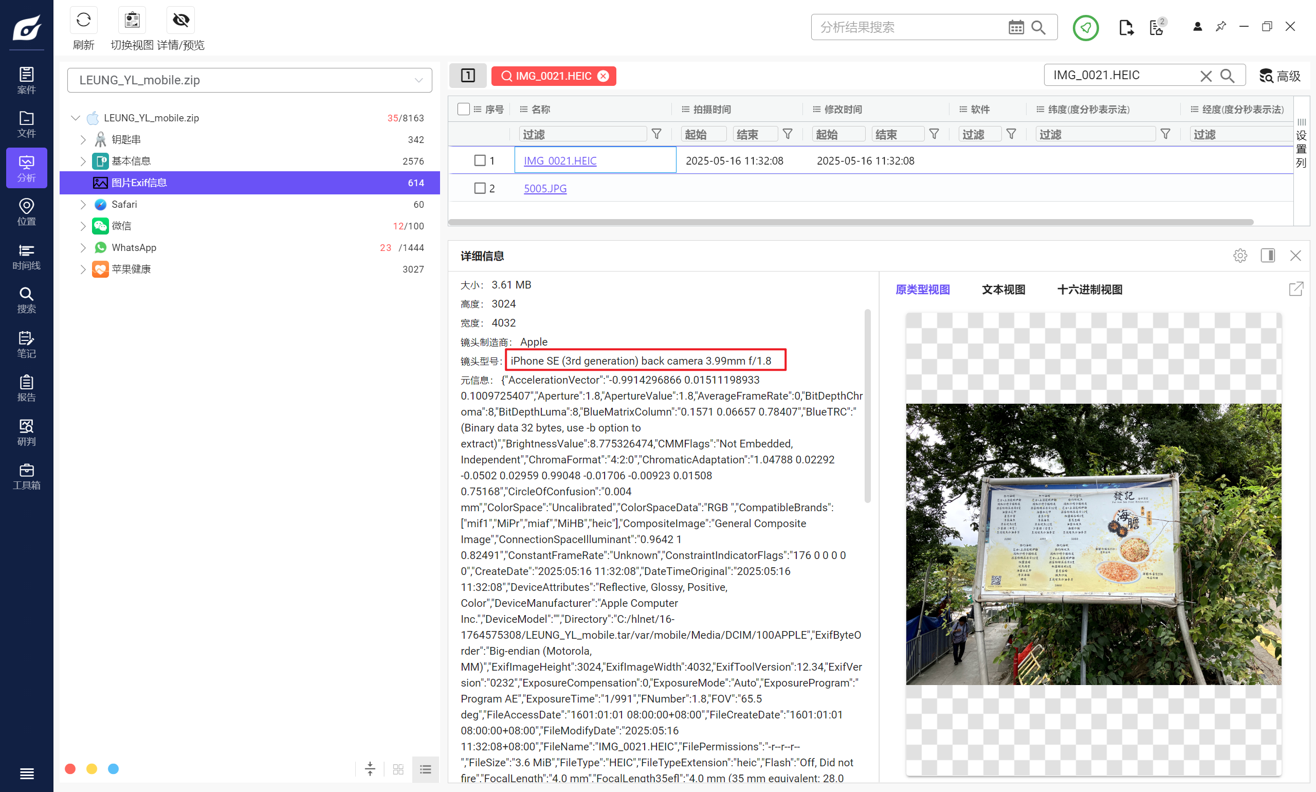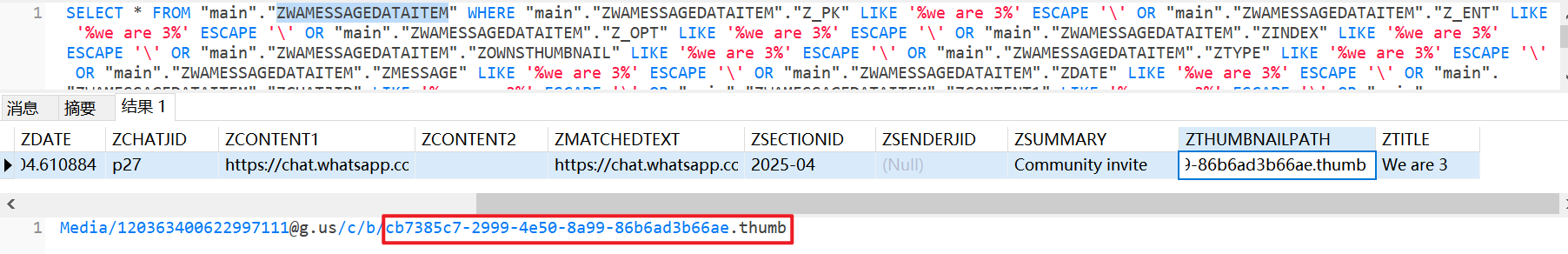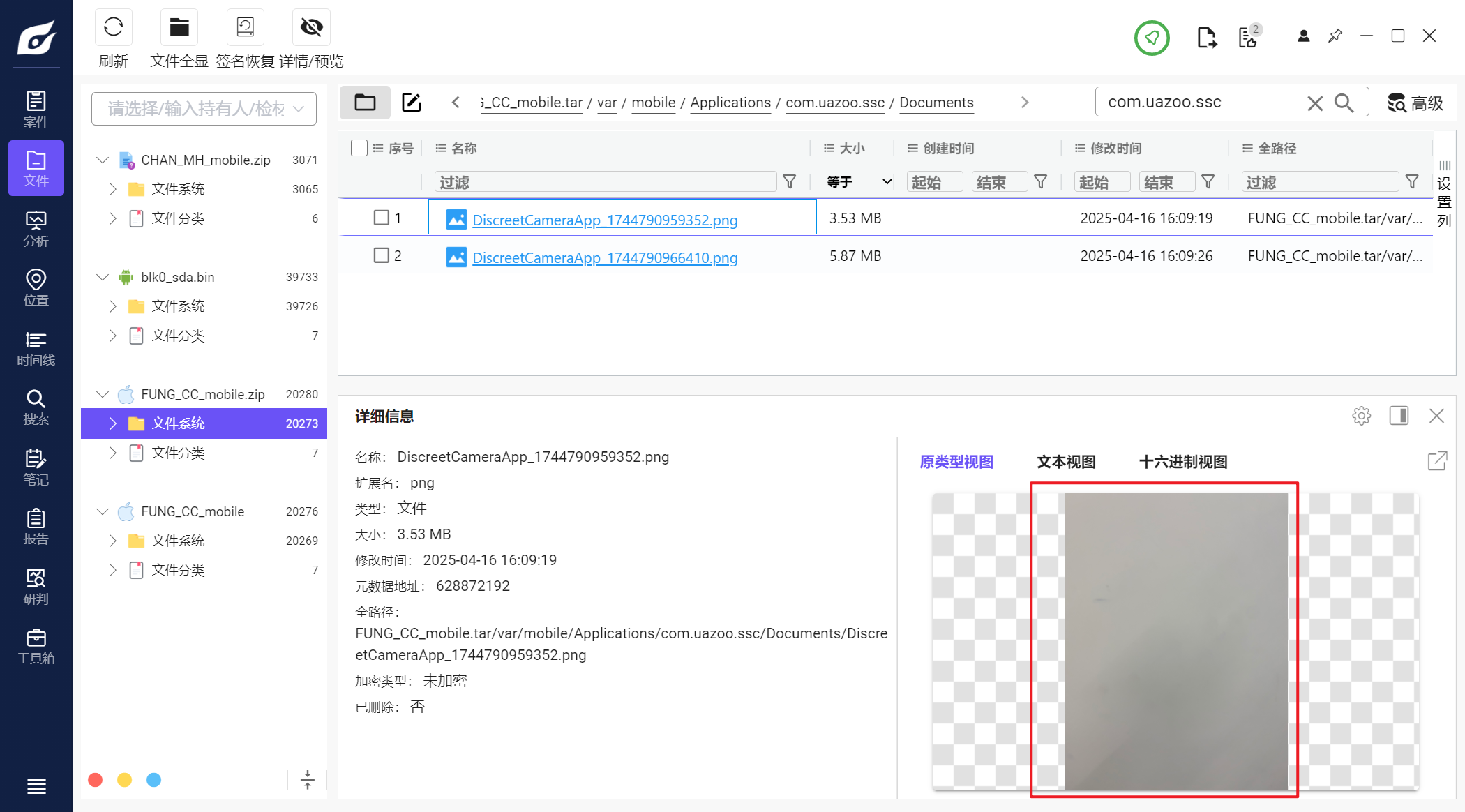 但是iterationC.db文件里只记录了是否存在交互、如何交互,没有记录具体传输了什么文件,因此需要配合Photos.sqlite来找到具体的文件