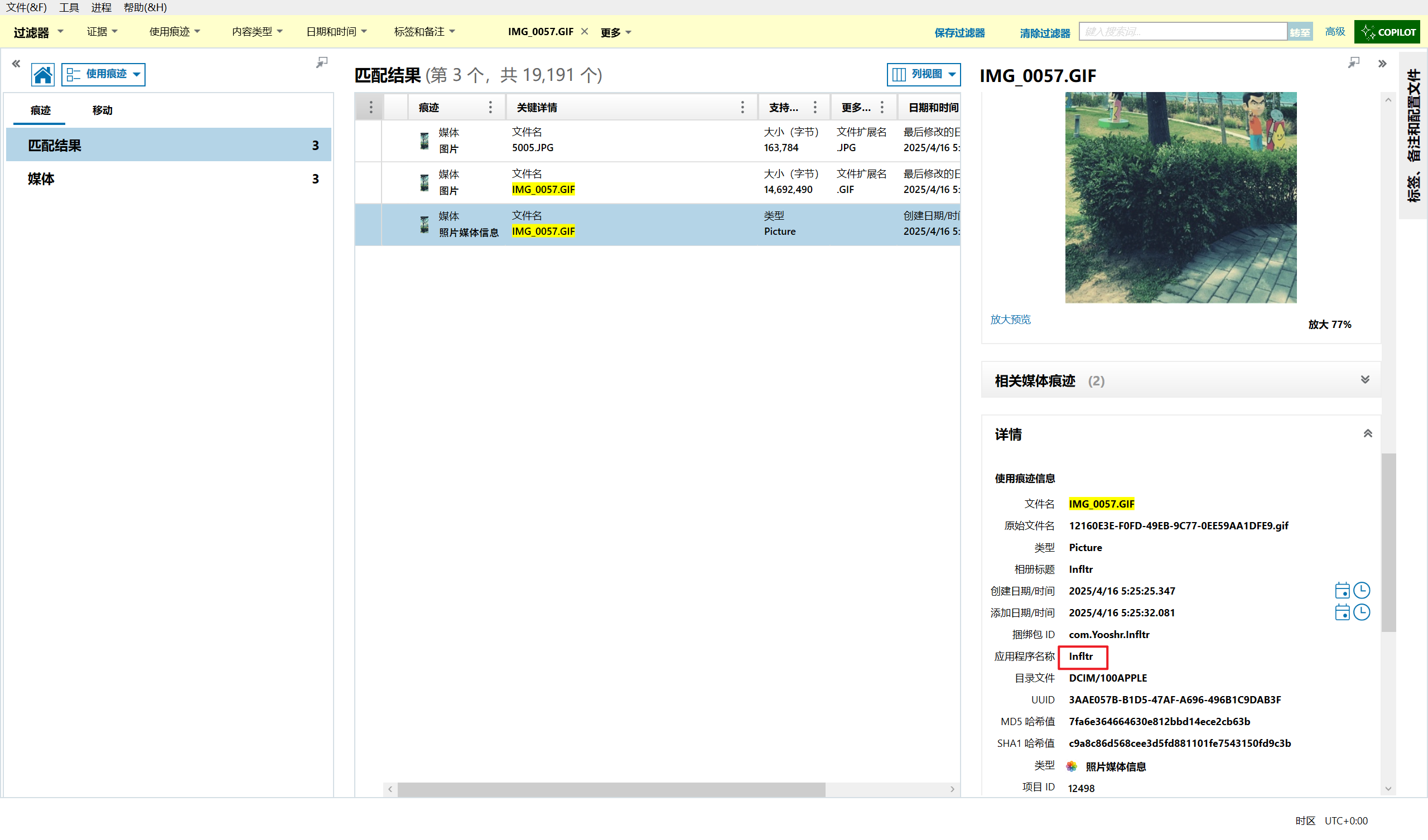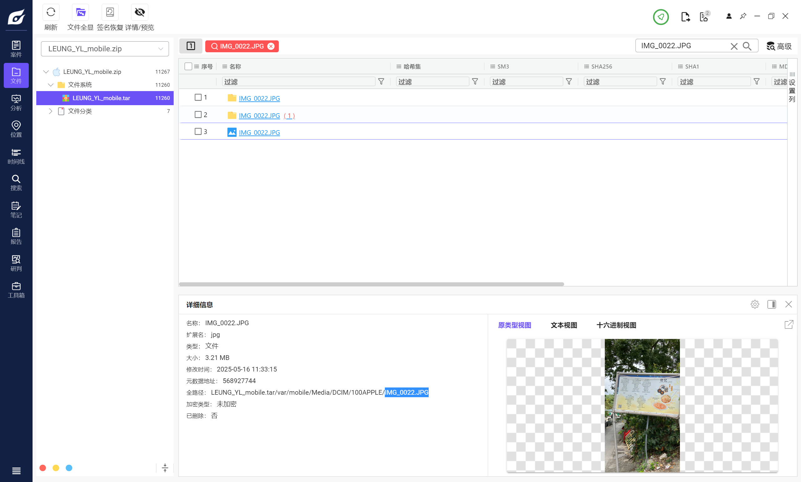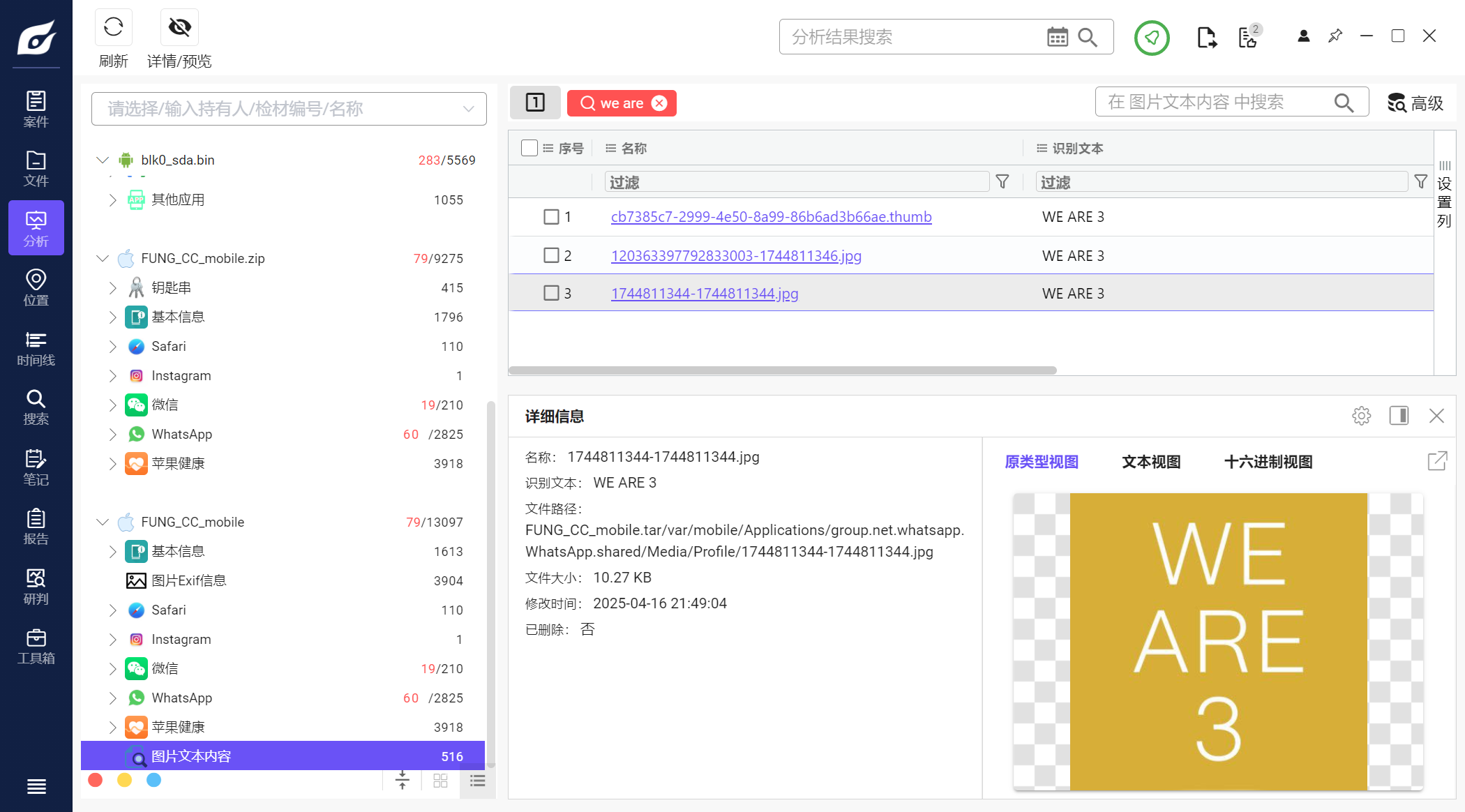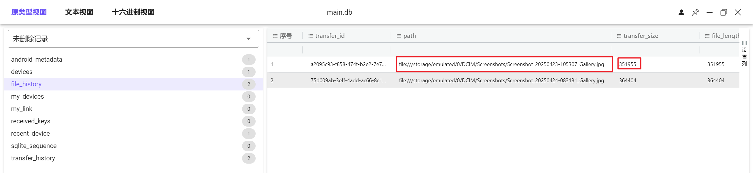 但是iterationC.db文件里只记录了是否存在交互、如何交互,没有记录具体传输了什么文件,因此需要配合Photos.sqlite来找到具体的文件