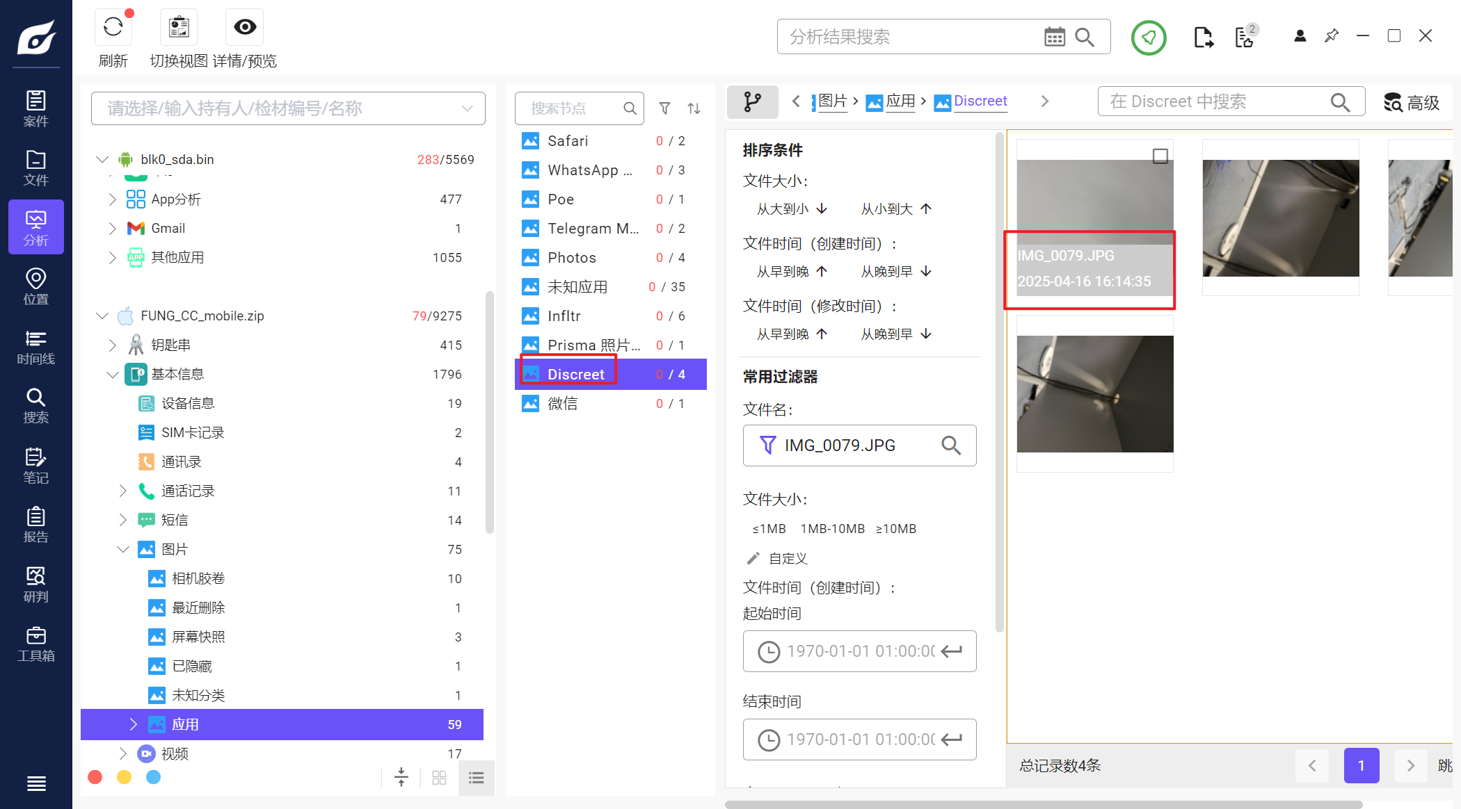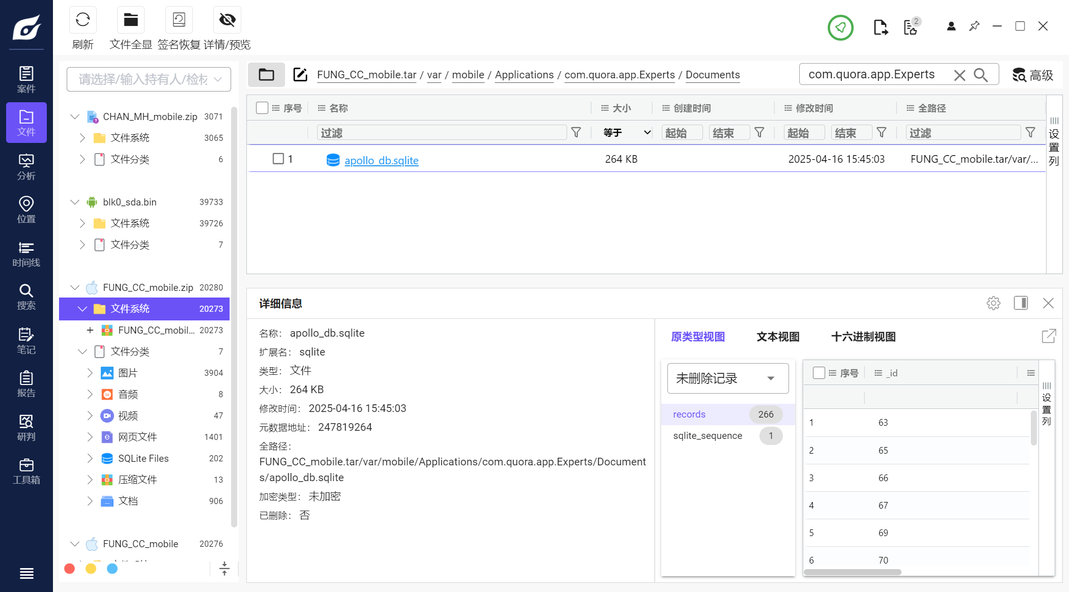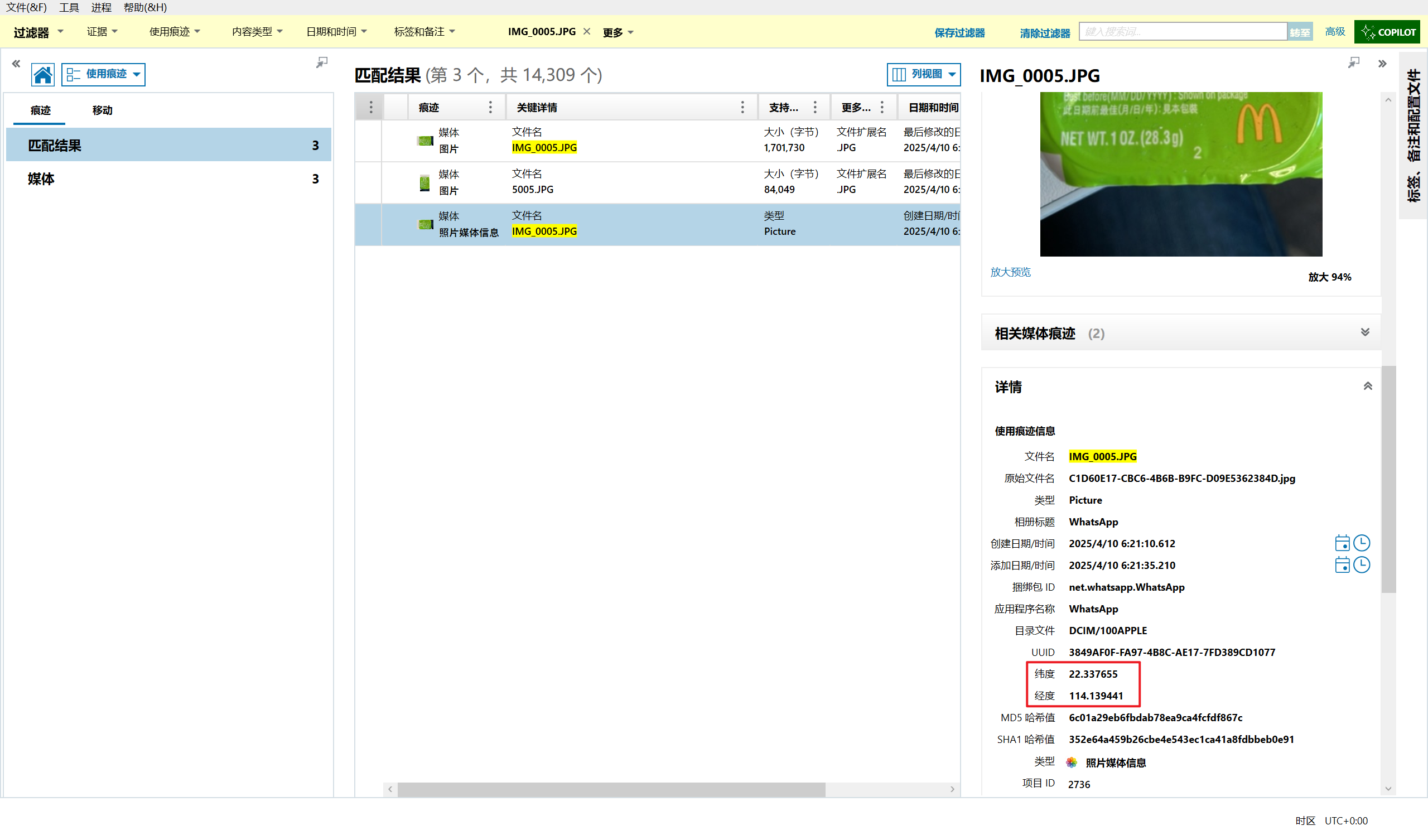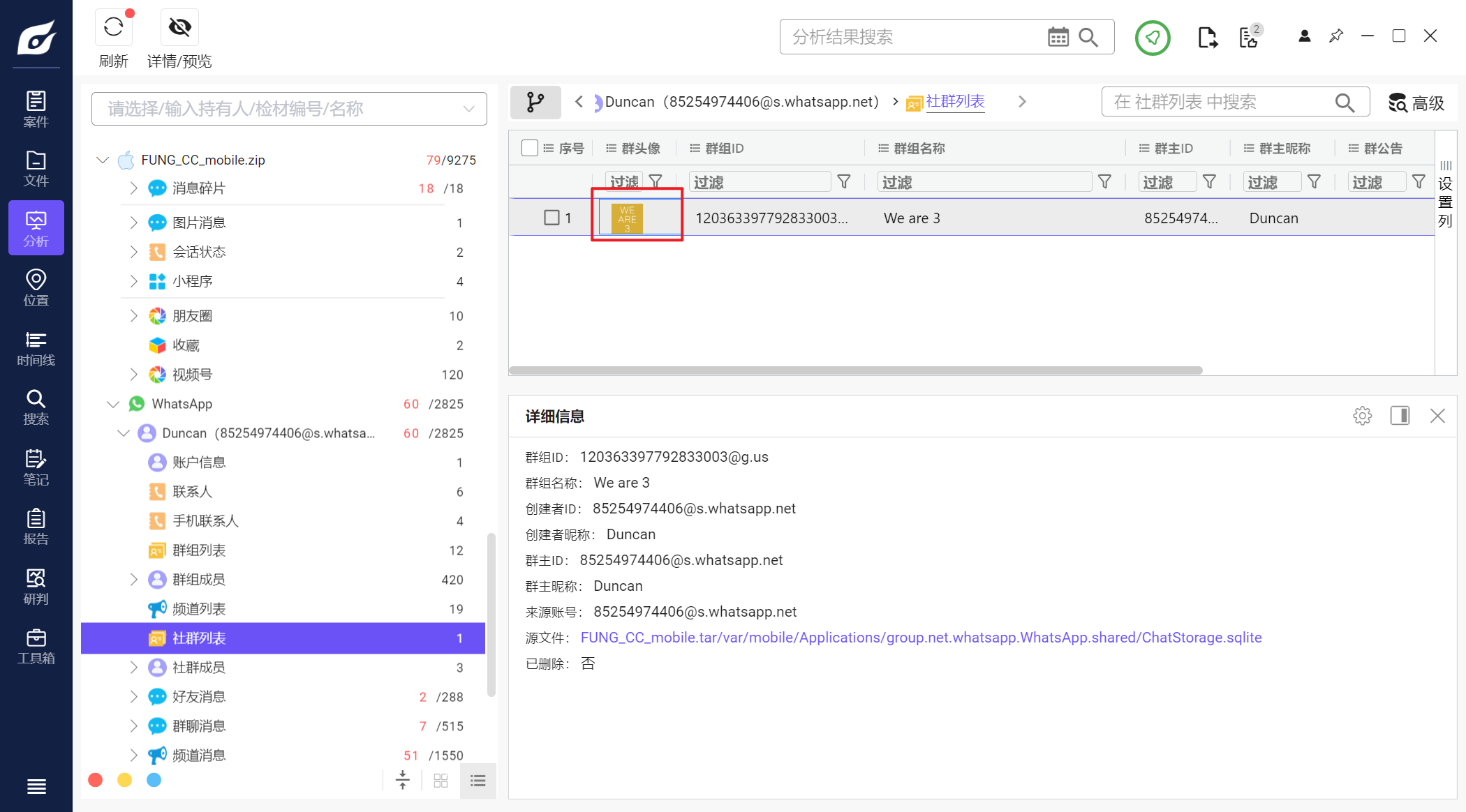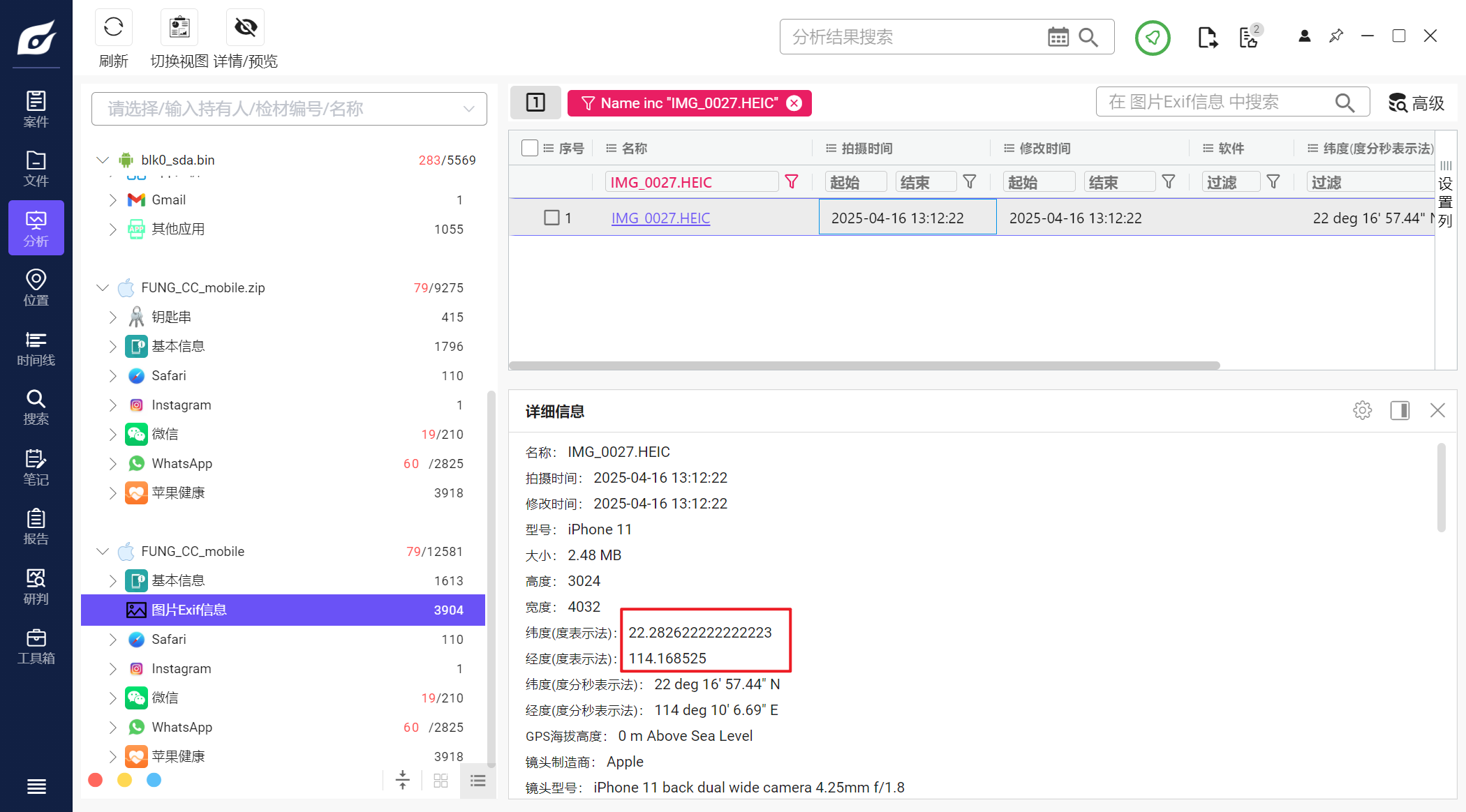 但是iterationC.db文件里只记录了是否存在交互、如何交互,没有记录具体传输了什么文件,因此需要配合Photos.sqlite来找到具体的文件