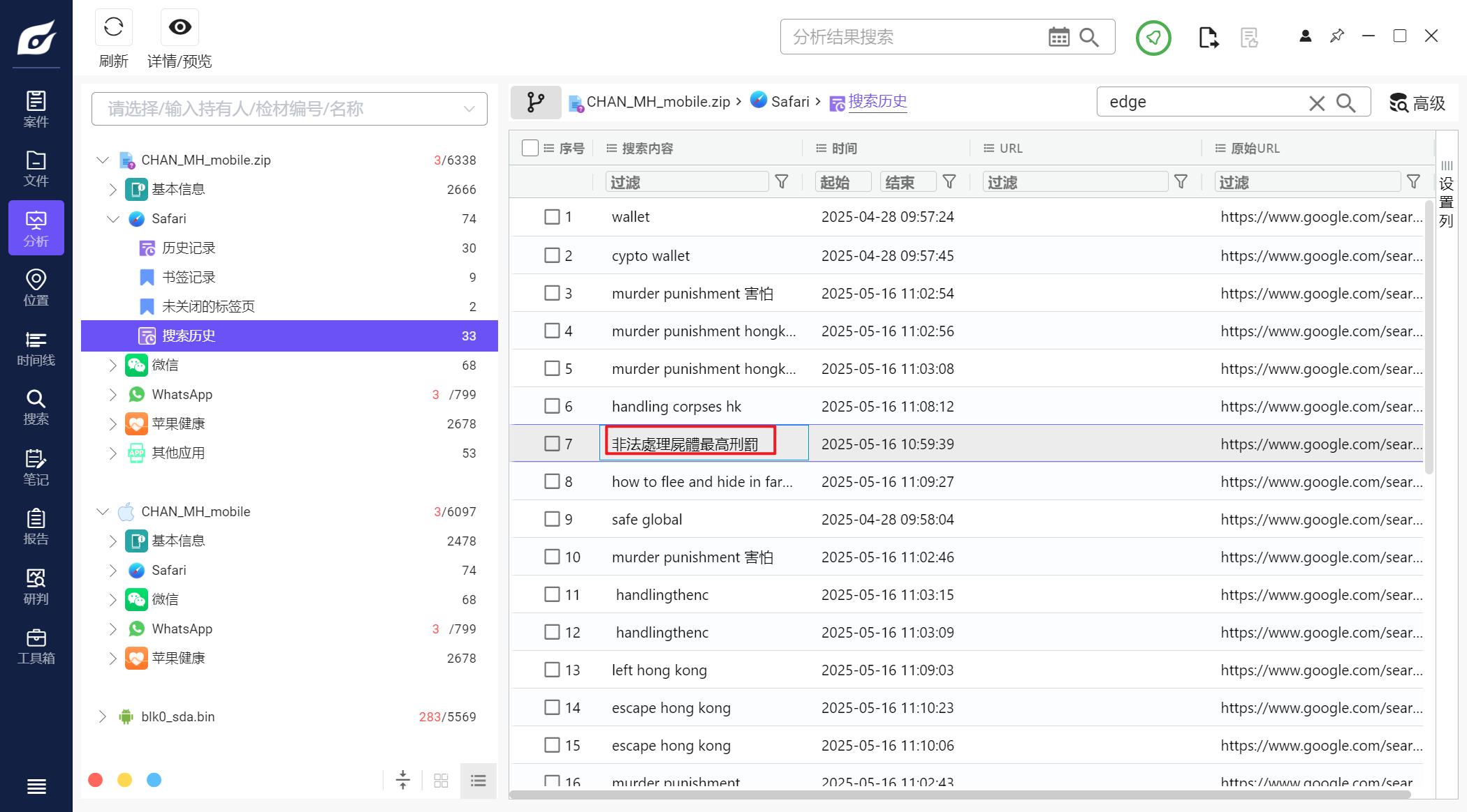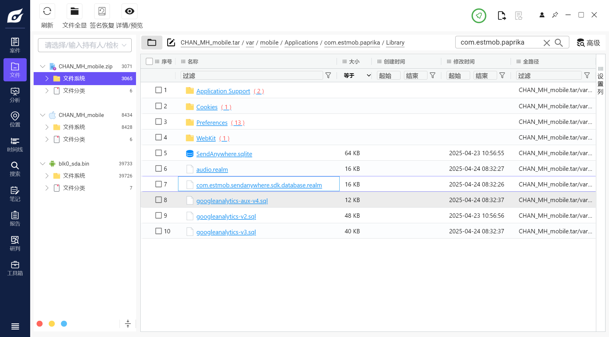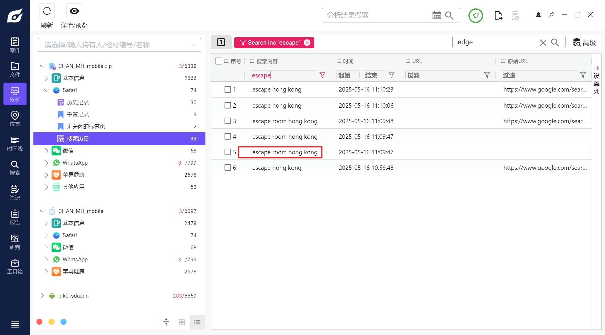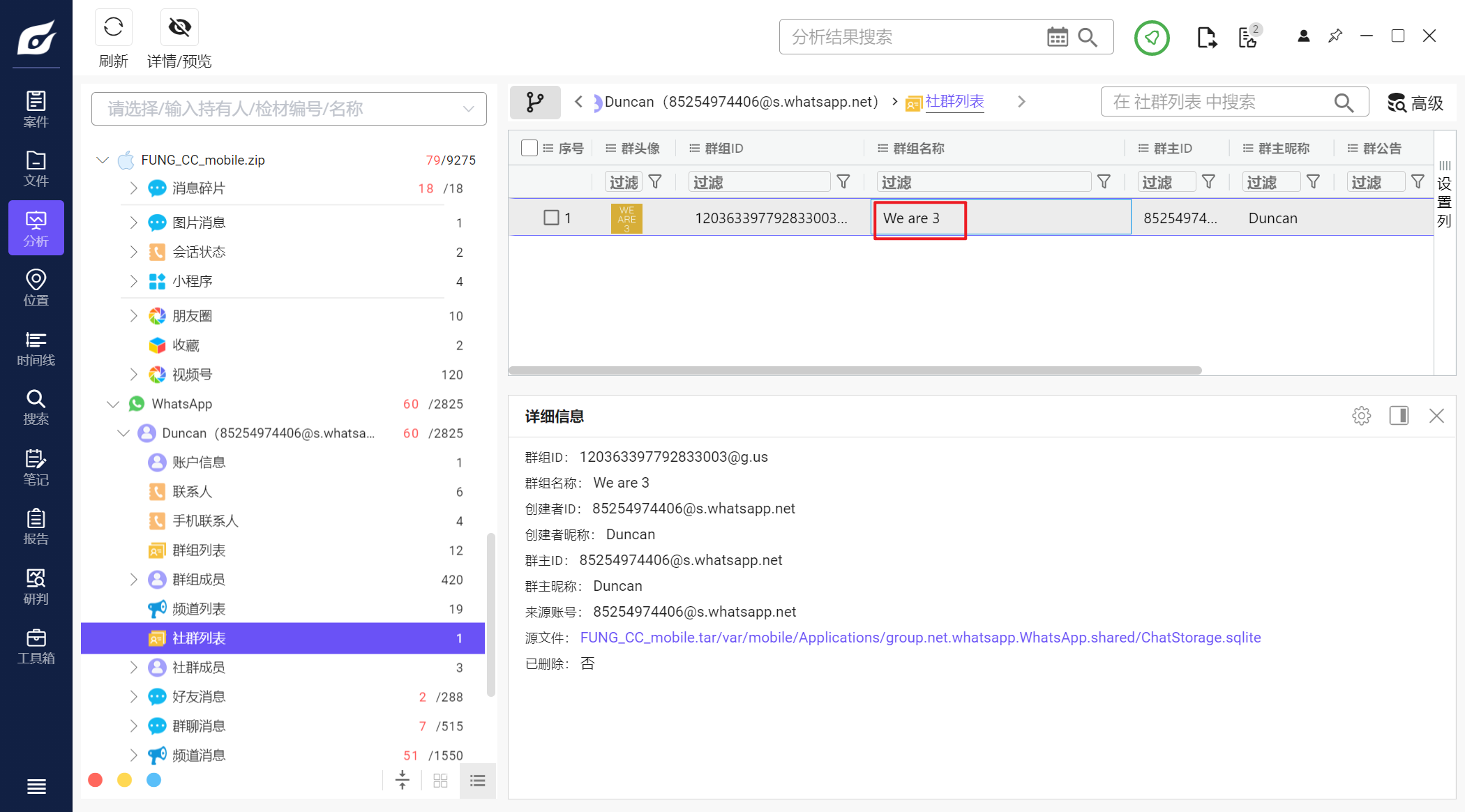 但是iterationC.db文件里只记录了是否存在交互、如何交互,没有记录具体传输了什么文件,因此需要配合Photos.sqlite来找到具体的文件