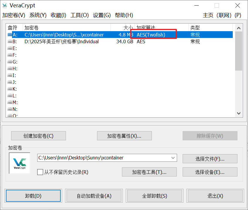 挂载成功后会有一个加密算法
