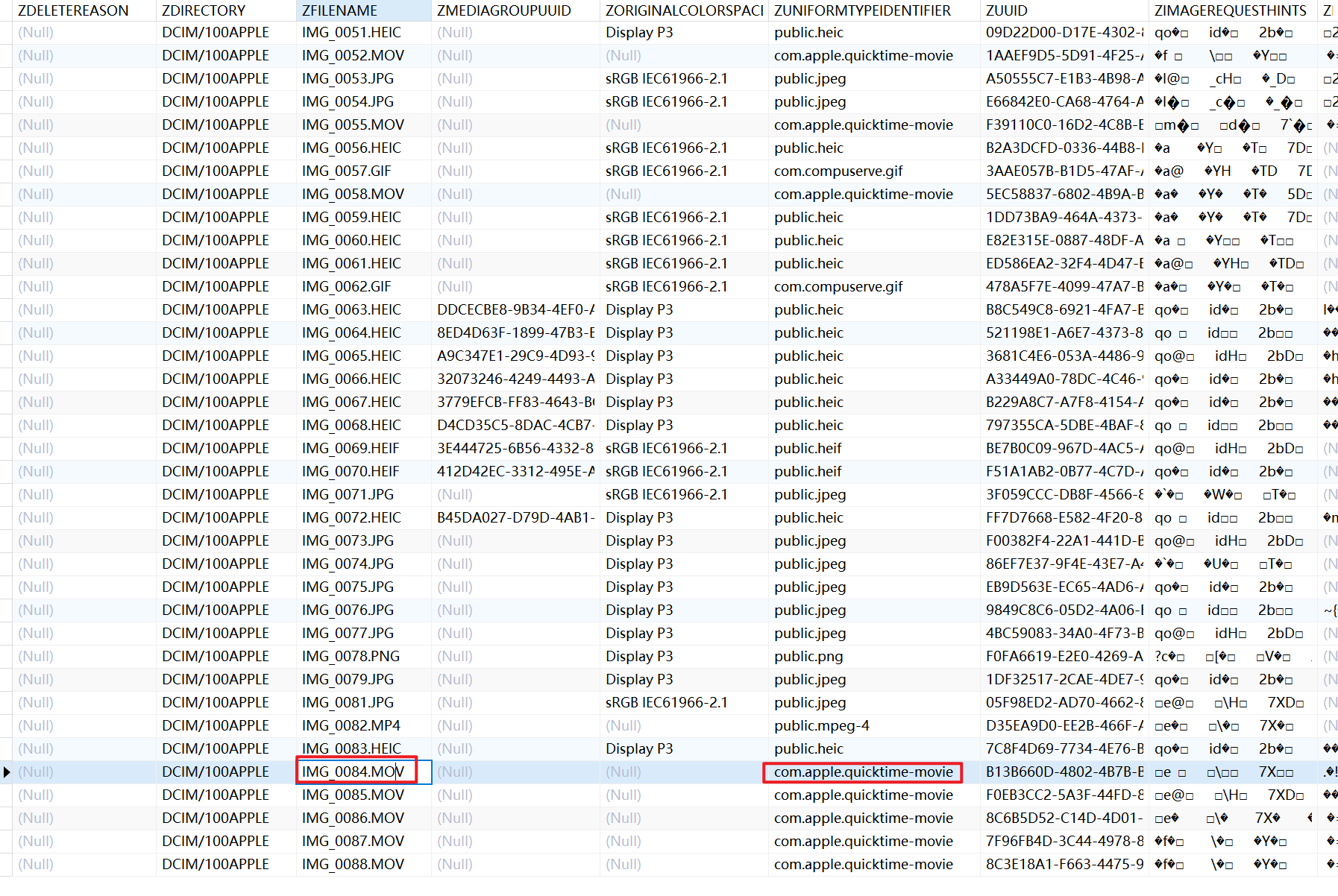ZFILENAME:文件名(如IMG_7081.MOV)ZDIRECTORY:相对路径(如DCIM/100APPLE)