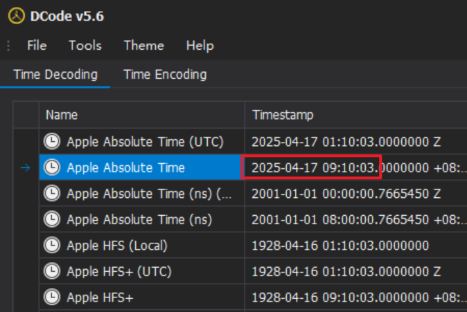- 含义:asset 创建时间(Apple 绝对时间,基准 2001-01-01)。