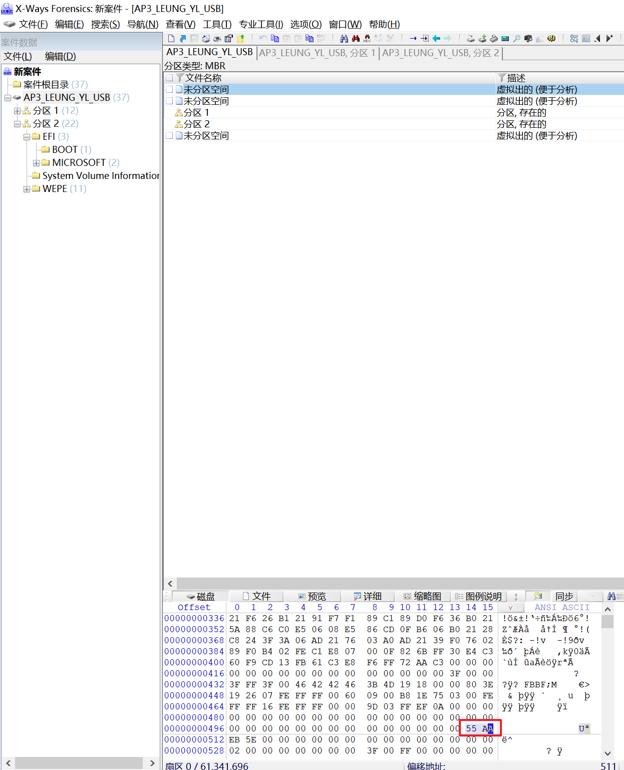ii) 有一个分区标签名为 "EFI"