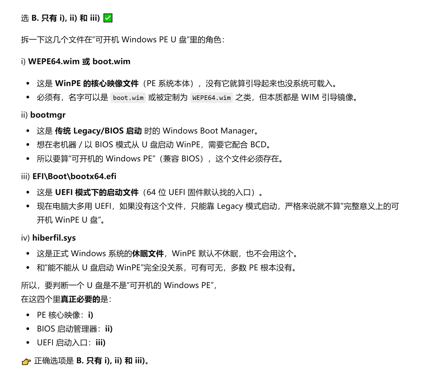 89、若要判断一个U盘是否为可开机的Windows PE,以下哪些文件必须存在?