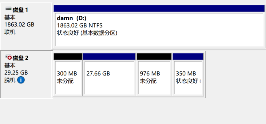 iv) 有一个分区的总容量小于 500 MB