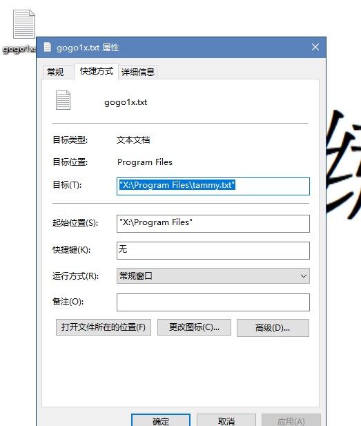 可以看到桌面上那个神秘txt快捷方式指向的就是tammy.txt