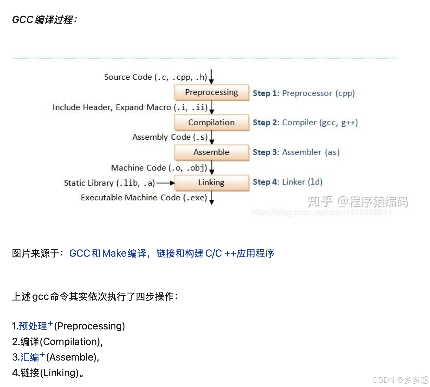 生成可执行程序过程为成四个步骤: