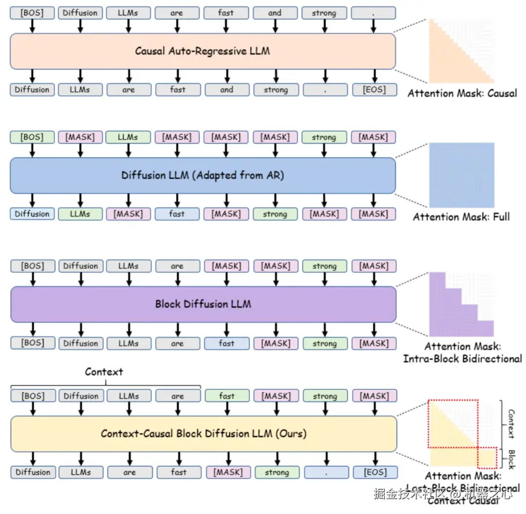 前文因果注意力掩码,自回归到 BlockDiffusion 的无缝迁移
