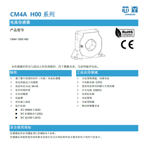 CM4A基于闭环霍尔原理 ,通过副边线圈产生补偿电流,抵消原边磁场,实现零磁通检测,具备以下特性: