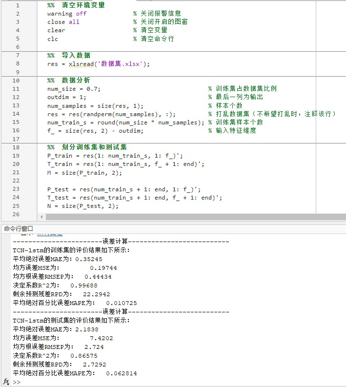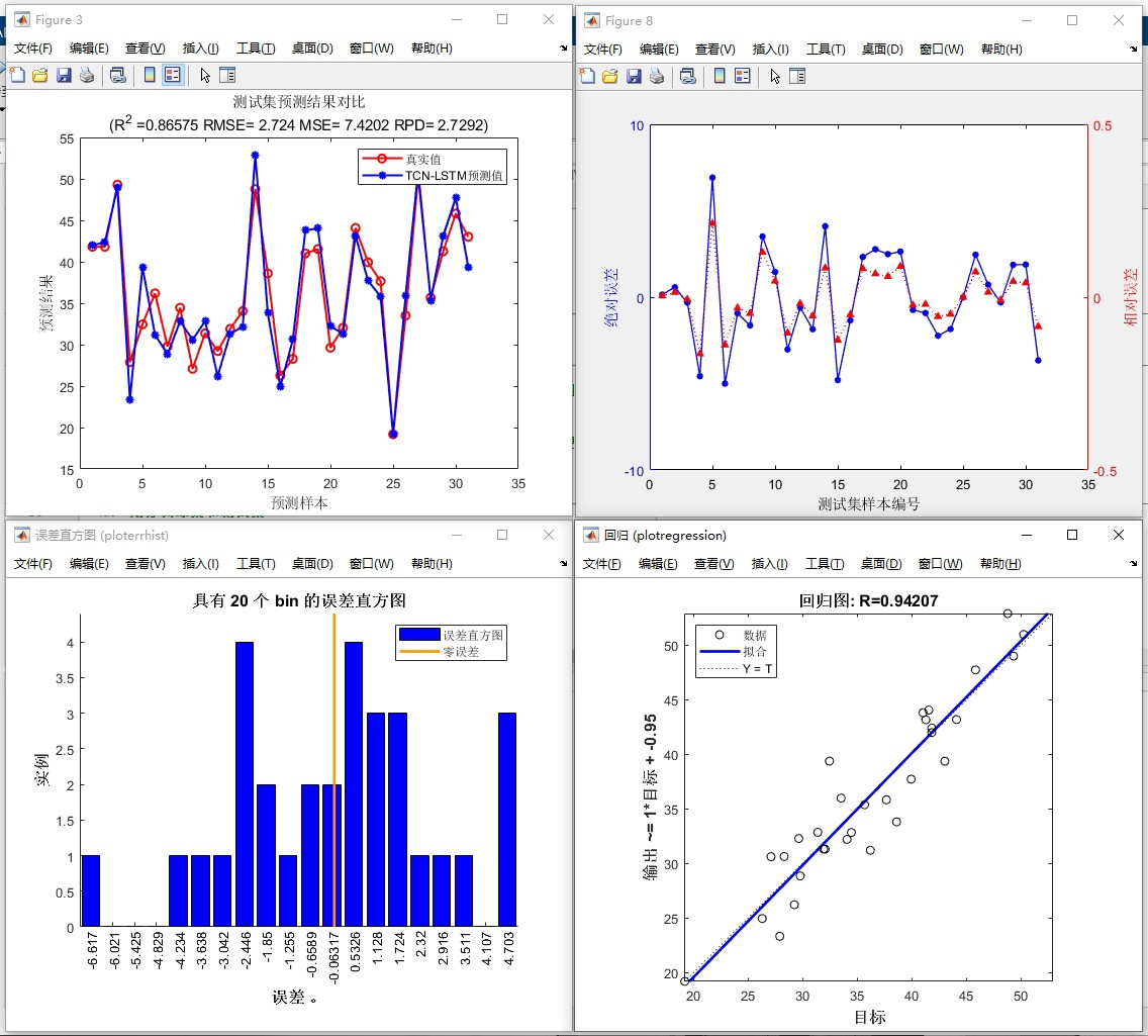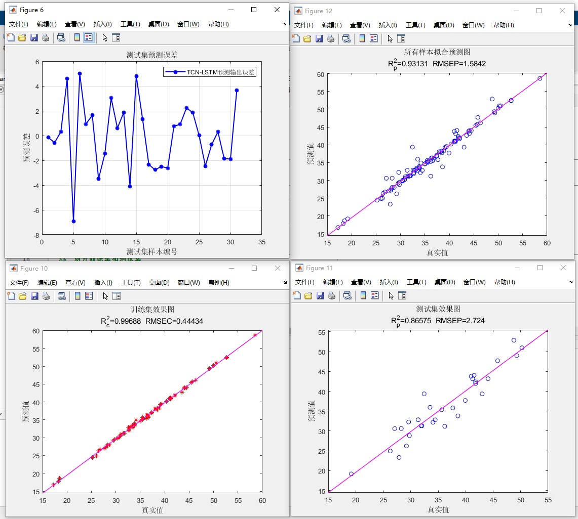 TCN-LSTM 基于时间卷积网络-双向长短期记忆网络的多特征回归预测(前换成单变量/多变量时序预测) 程序已经调试好,无需更改代码替换数据集即可运行数据格式为excel LSTM可以更换为BiLSTM/GRU(前) 、运行环境要求MATLAB版本为2021b及其以上 、评价指标包括:R2、MAE、MSE、RPD、RMSE等,图很多,符合您的需要 、代码中文注释清晰,质量极高 、测试数据集,可以直接运行源程序 替换你的数据即可用 适合新手小白 、 保证源程序运行, 模型只是个工具,不一定替换数据就达到你想要的结果 考虑好再
