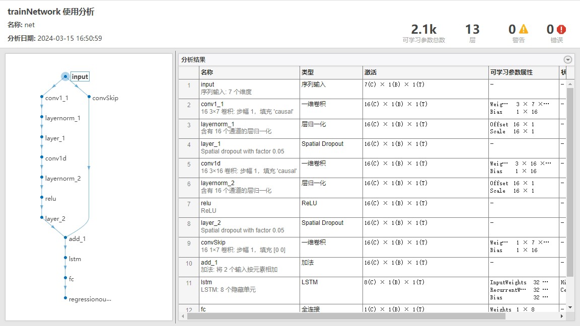 这里有个坑------TCN的因果卷积得手动控制padding,建议用非对称padding只在左侧填充。LSTM部分直接调库就行,想换双向LSTM的话把bilstmLayer替换上,注意调整输出维度。