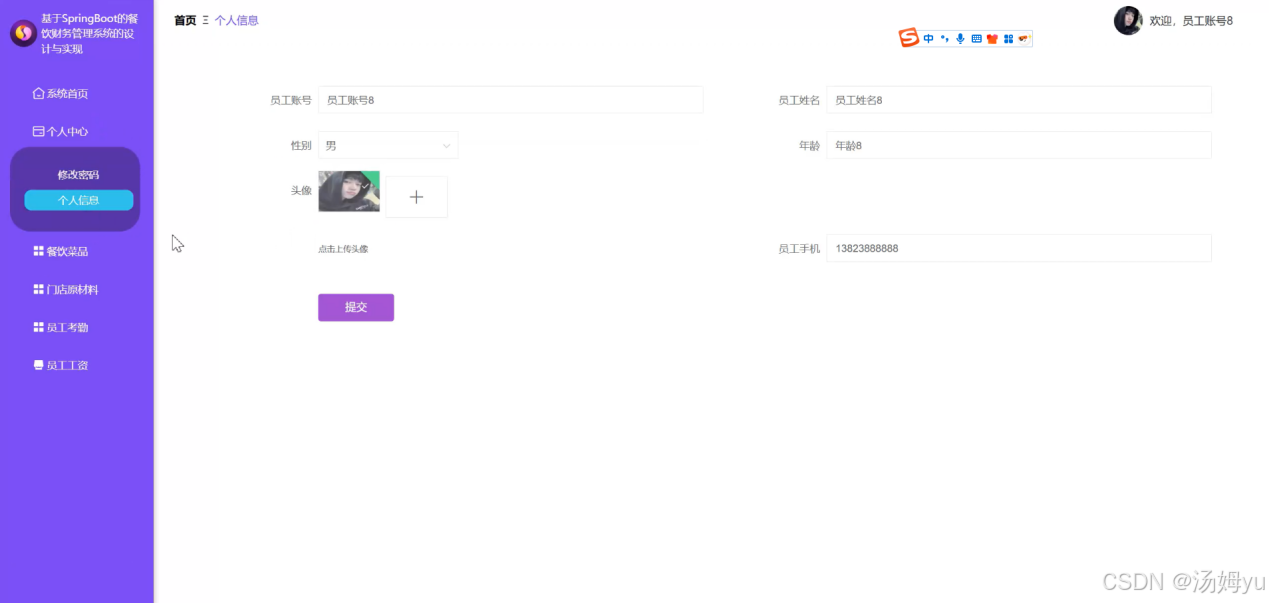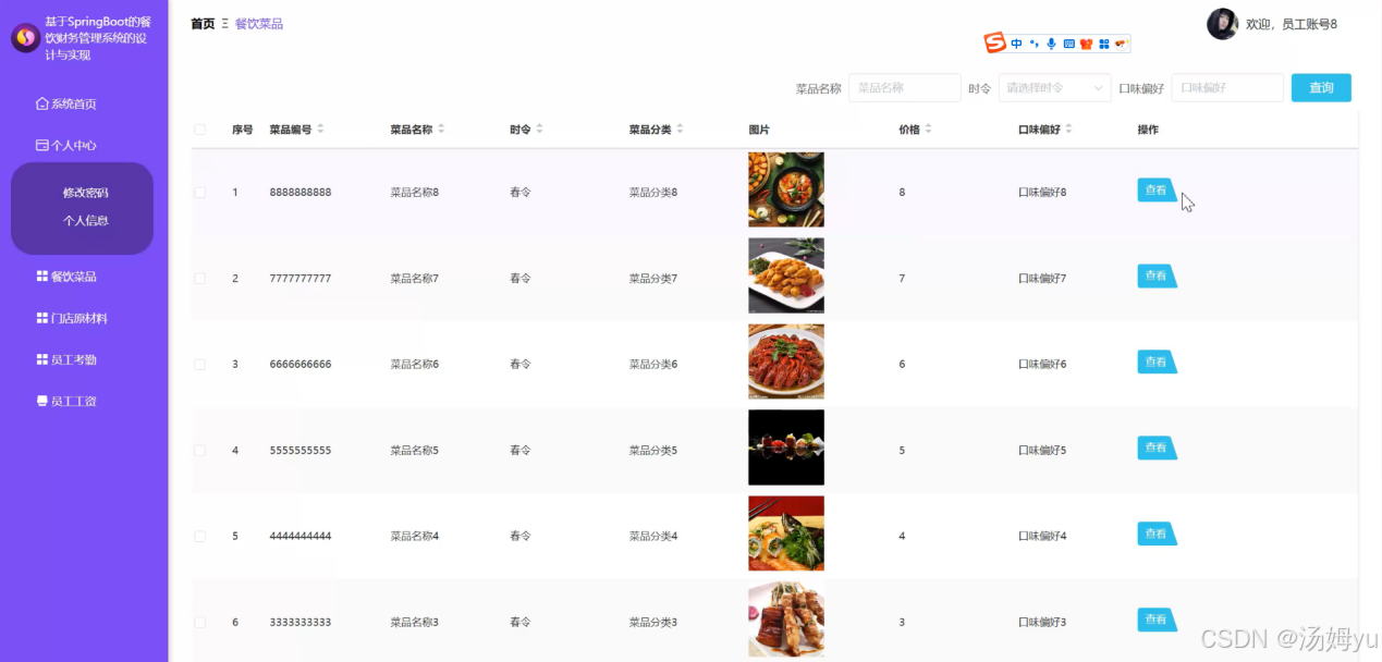 在个人中心,员工可查看、修改个人信息,设置登录密码保障安全,查看个人档案规划职业发展。餐饮菜品查看功能助力员工服务顾客,能查看菜品详细信息,按类别或价格筛选推荐菜品。