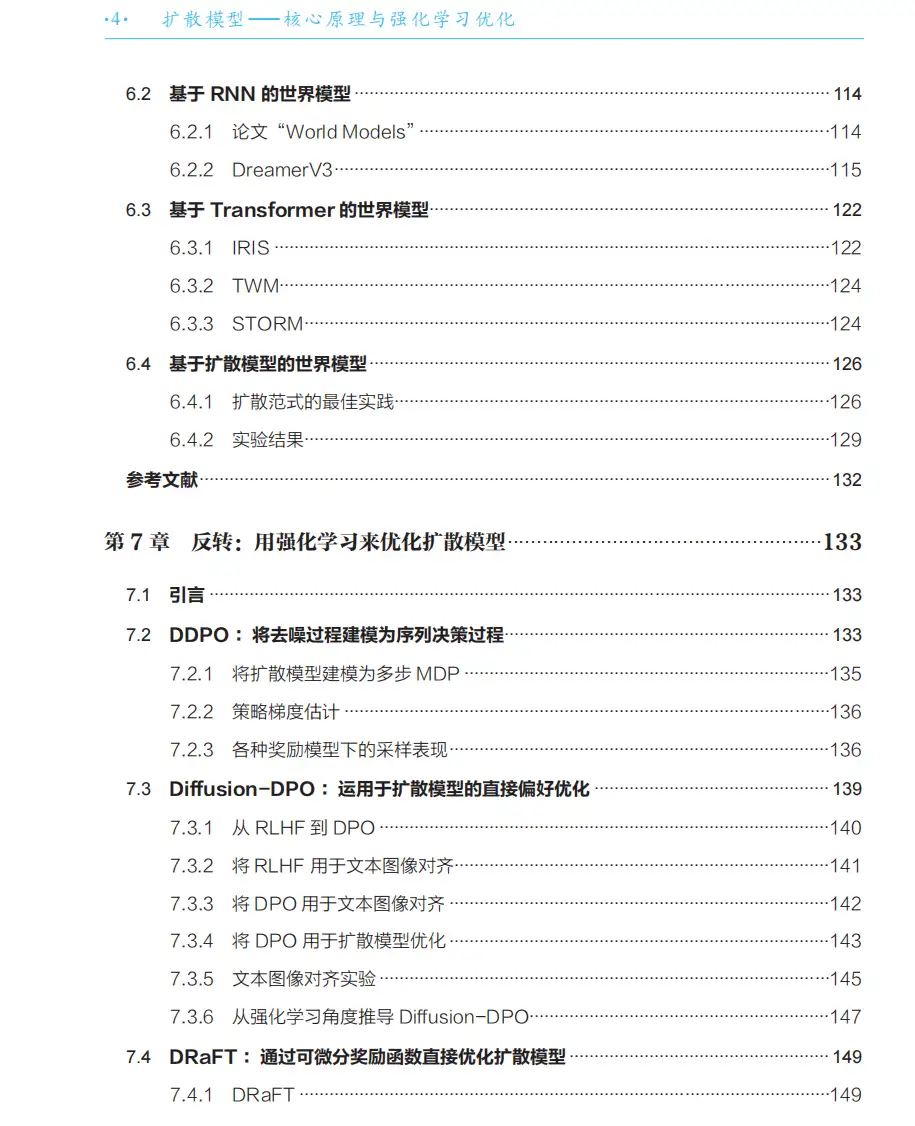 ● 前沿交叉、脉络明晰:全书紧跟最新学术进展,系统梳理扩散模型与强化 学习、世界模型等领域的交叉创新成果,构筑体系化的技术脉络。