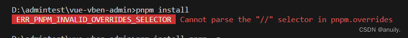 'ERR_PNPM_INVALID_OVERRIDES_SELECTOR Cannot parse the "//" selector in pnpm.overrides'
