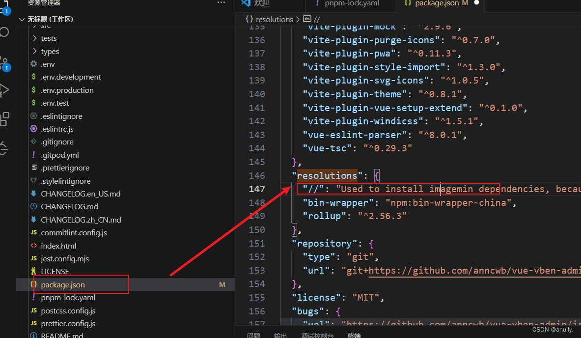 这是因为,把这一行删除就可以了[resolutions作用类似:指定依赖版本覆盖所有依赖及子依赖。]