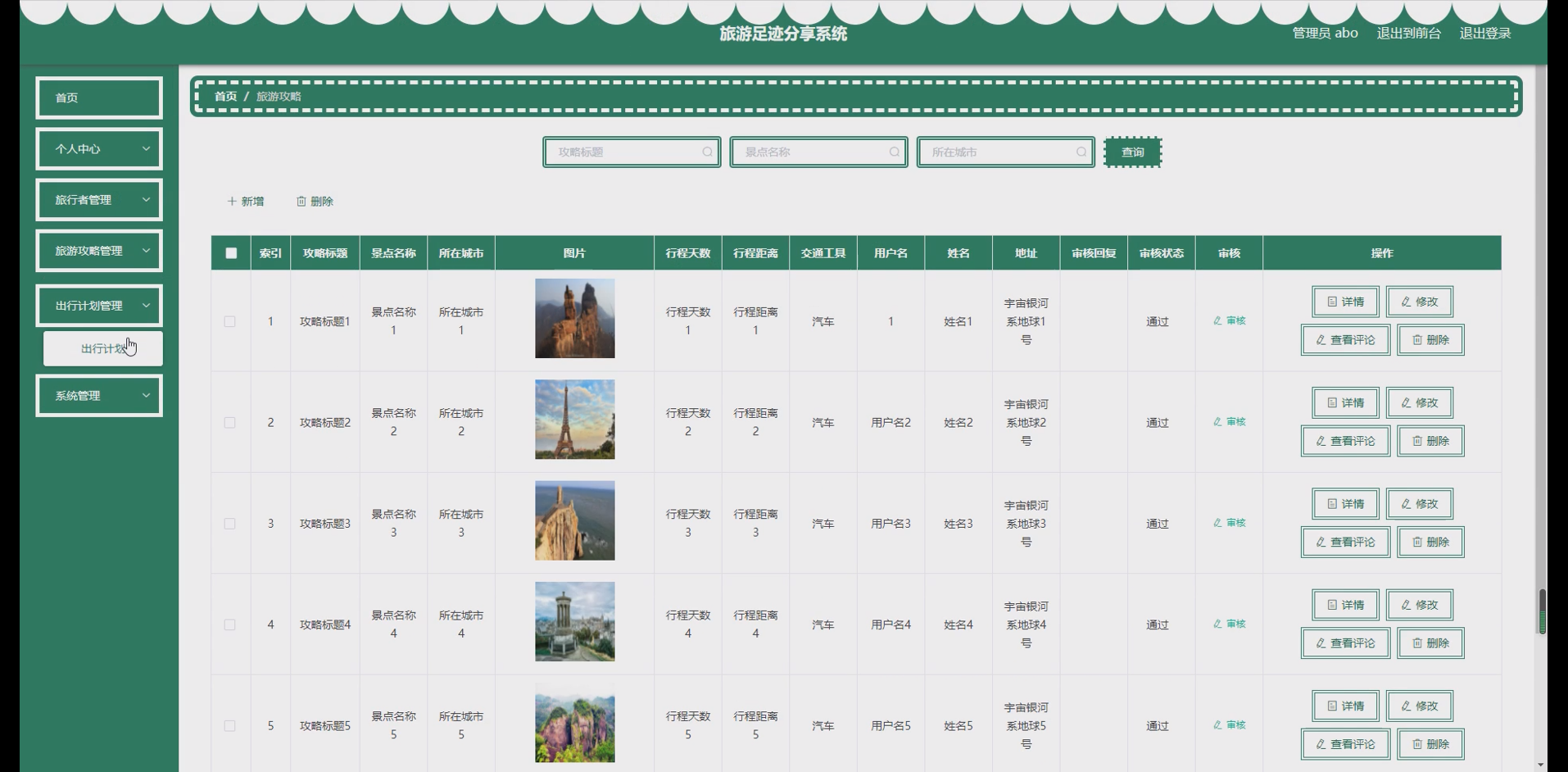 本课题旨在开发一套基于SSM框架的旅游足迹分享系统,实现旅行者信息管理、旅游攻略分享、出行计划制定三大核心功能,满足用户在旅行全流程中的信息需求。具体目标如下: