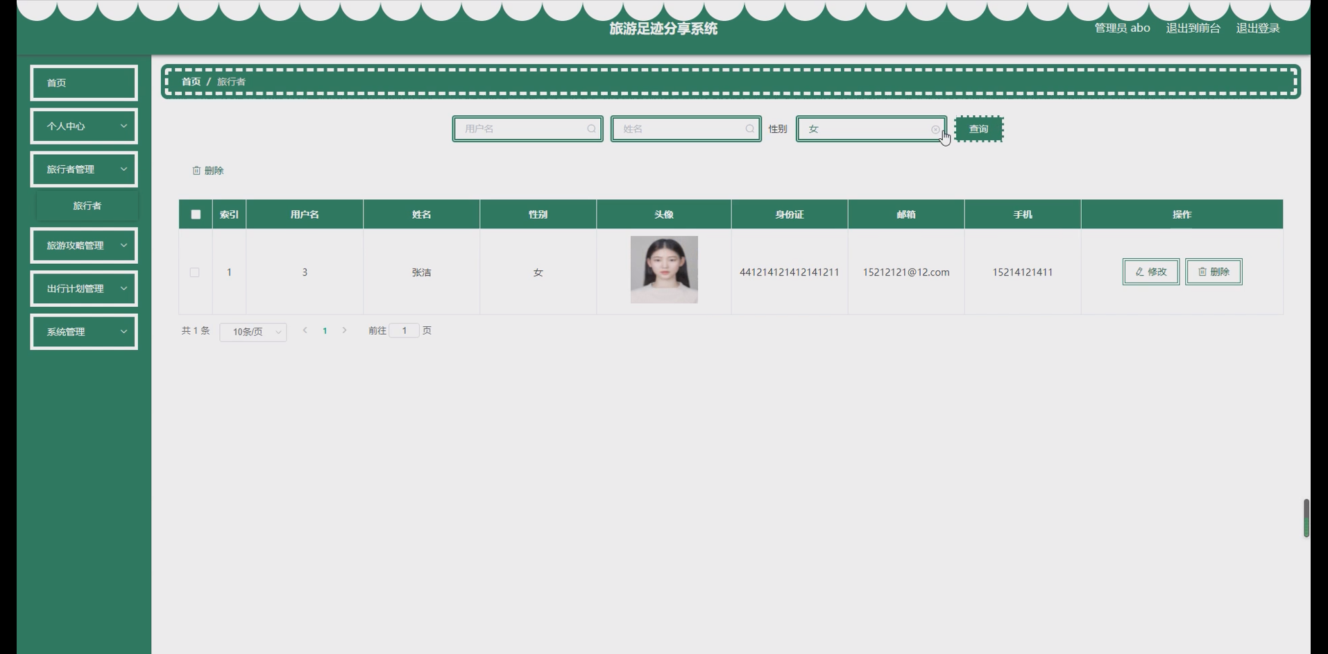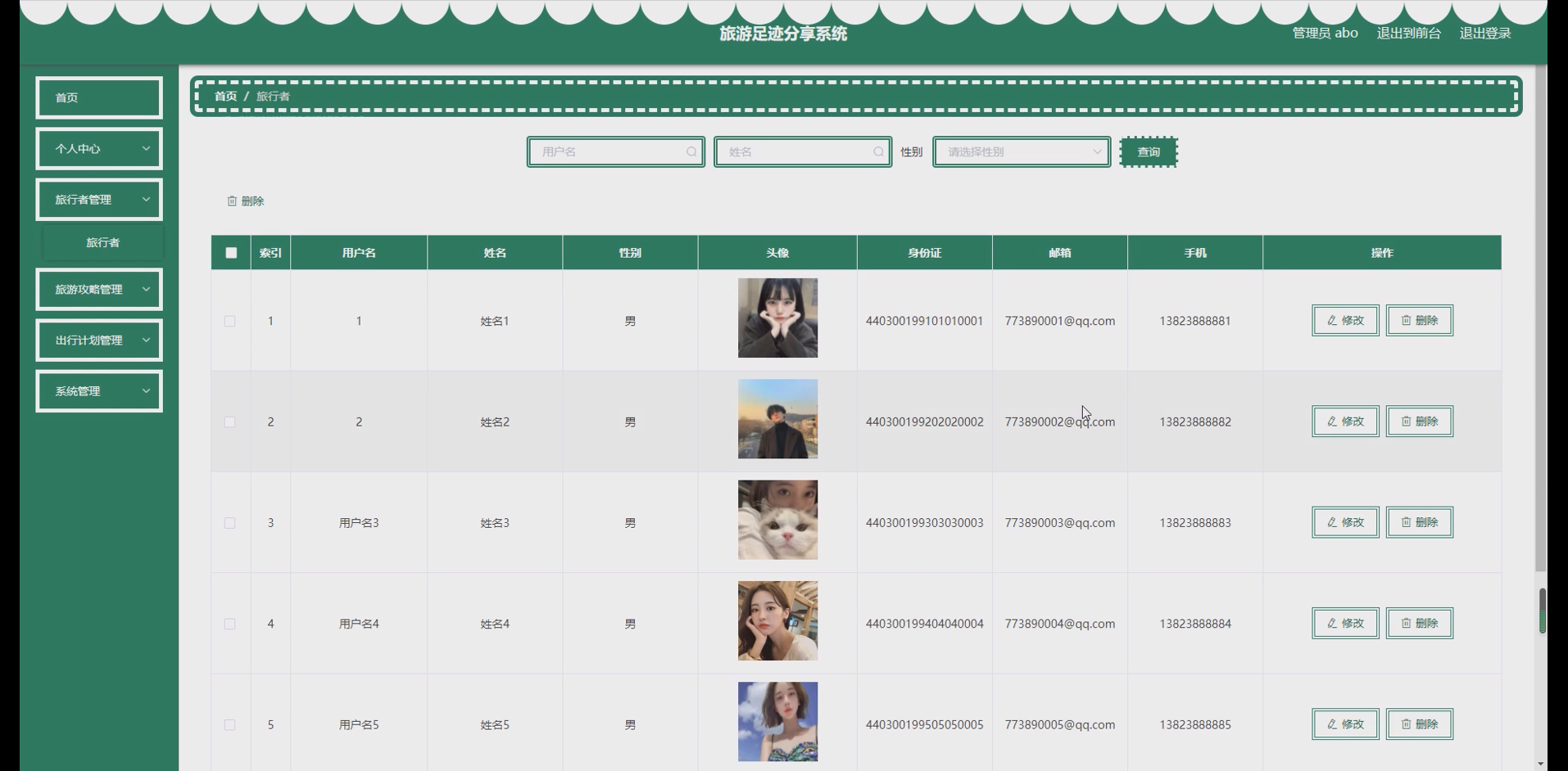 实现旅行者信息的安全管理,包括用户注册、登录、个人信息修改等功能,确保用户数据的安全性和隐私性。