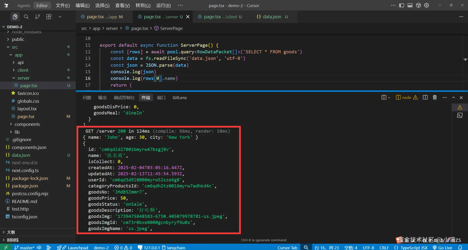 因为是在服务端渲染的所以日志会出现在控制台,那为什么控制台也会出现,是因为Next.js在本地开发模式方便我们调试进行的输出,后续生产环境就看不到了。