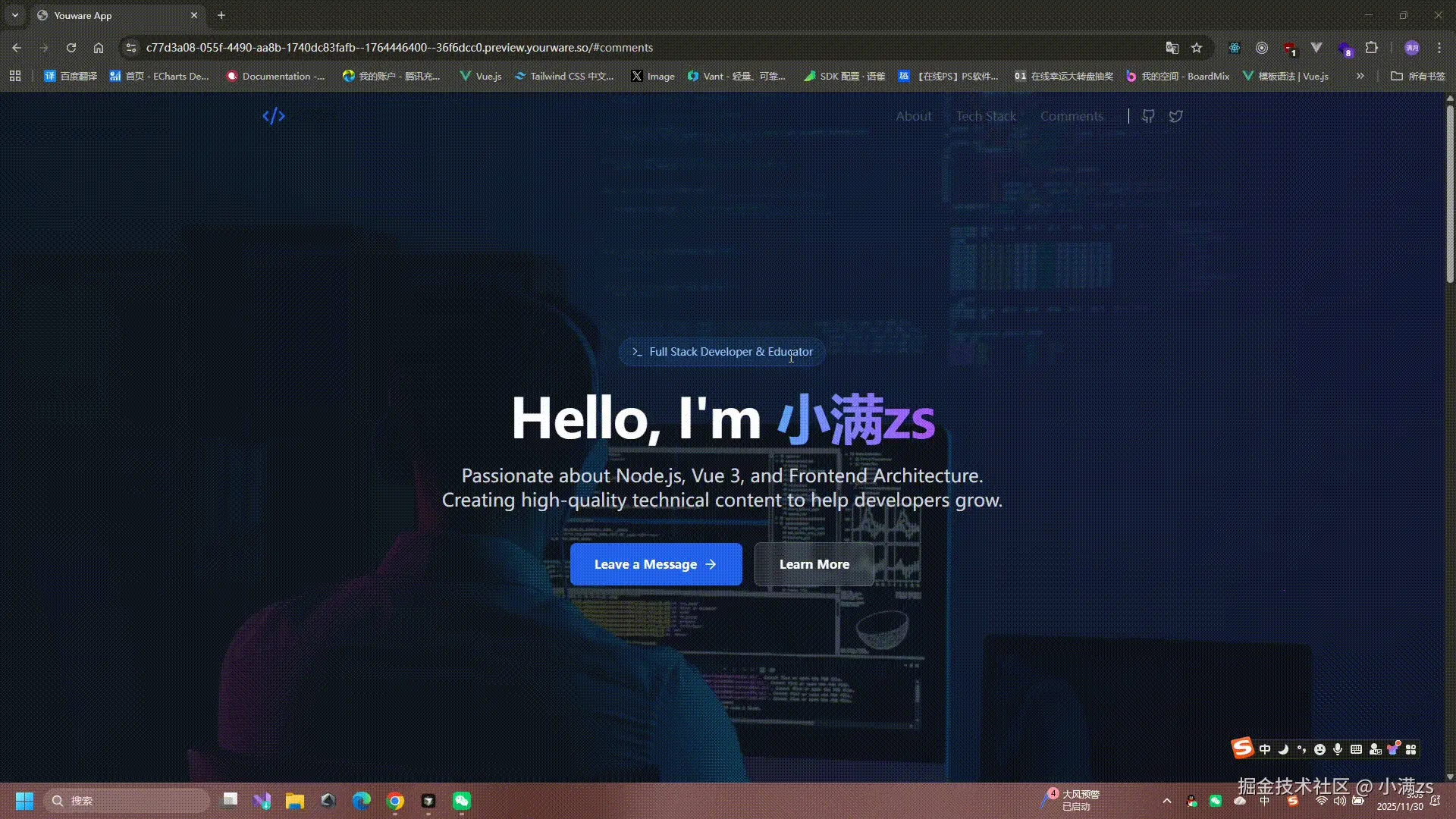 - 客户端组件: 下面留言框是需要交互的,例如交互功能,如点赞按钮、计数器、表单等。这类组件需要依赖浏览器DOM事件、状态管理(useState)、副作用(useEffect)等客户端能力,必须在客户端完成渲染和水合(即添加事件处理程序的过程)才能实现交互效果
