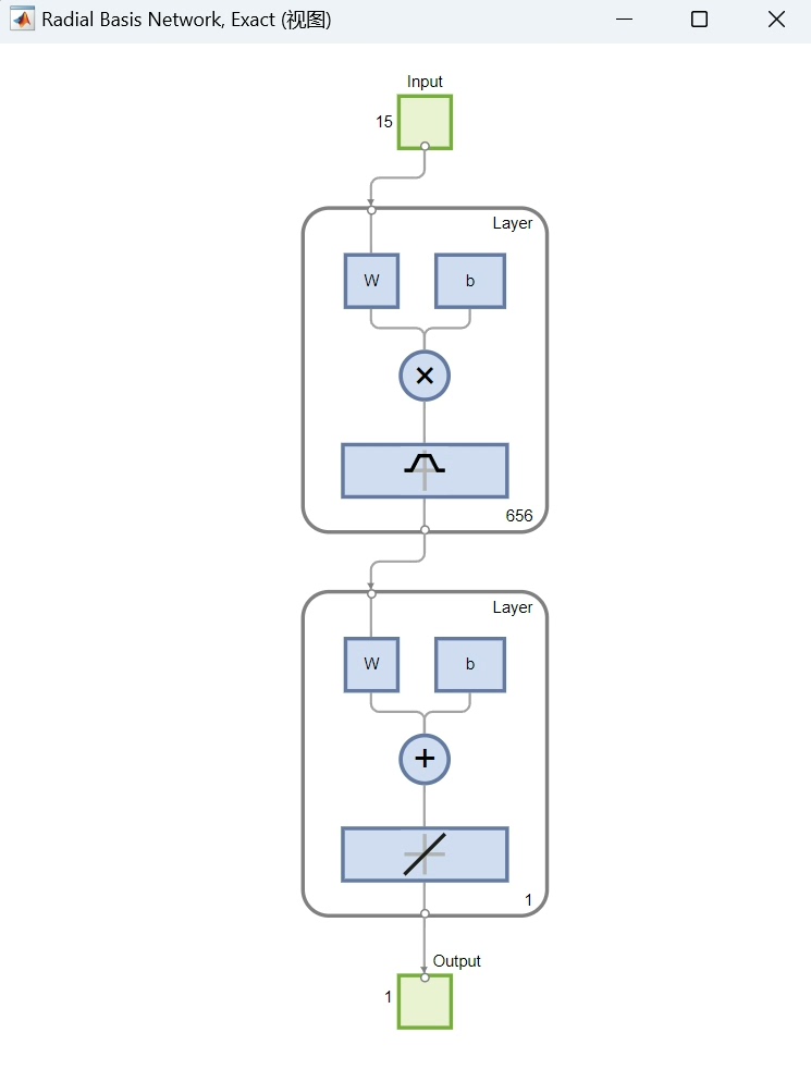 % newrb函数创建一个RBF神经网络,这里根据训练数据和设定参数来构建