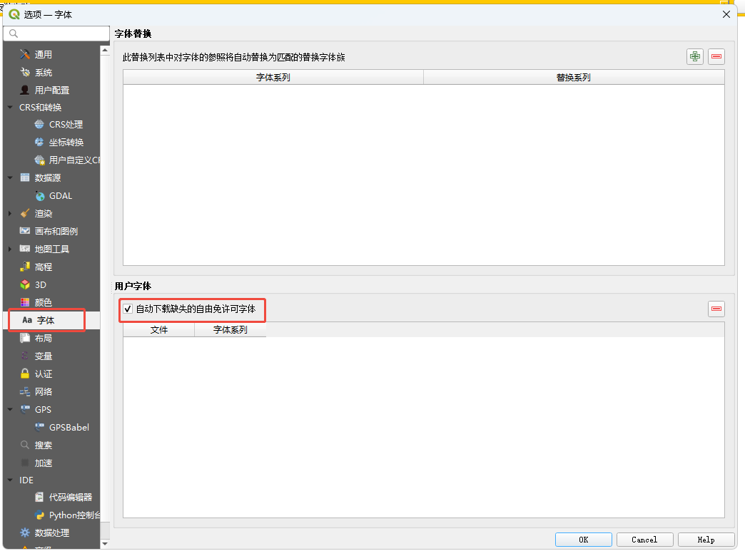 在"用户字体(User Fonts)"部分,取消勾选"自动下载缺失的自由免许可字体"选项