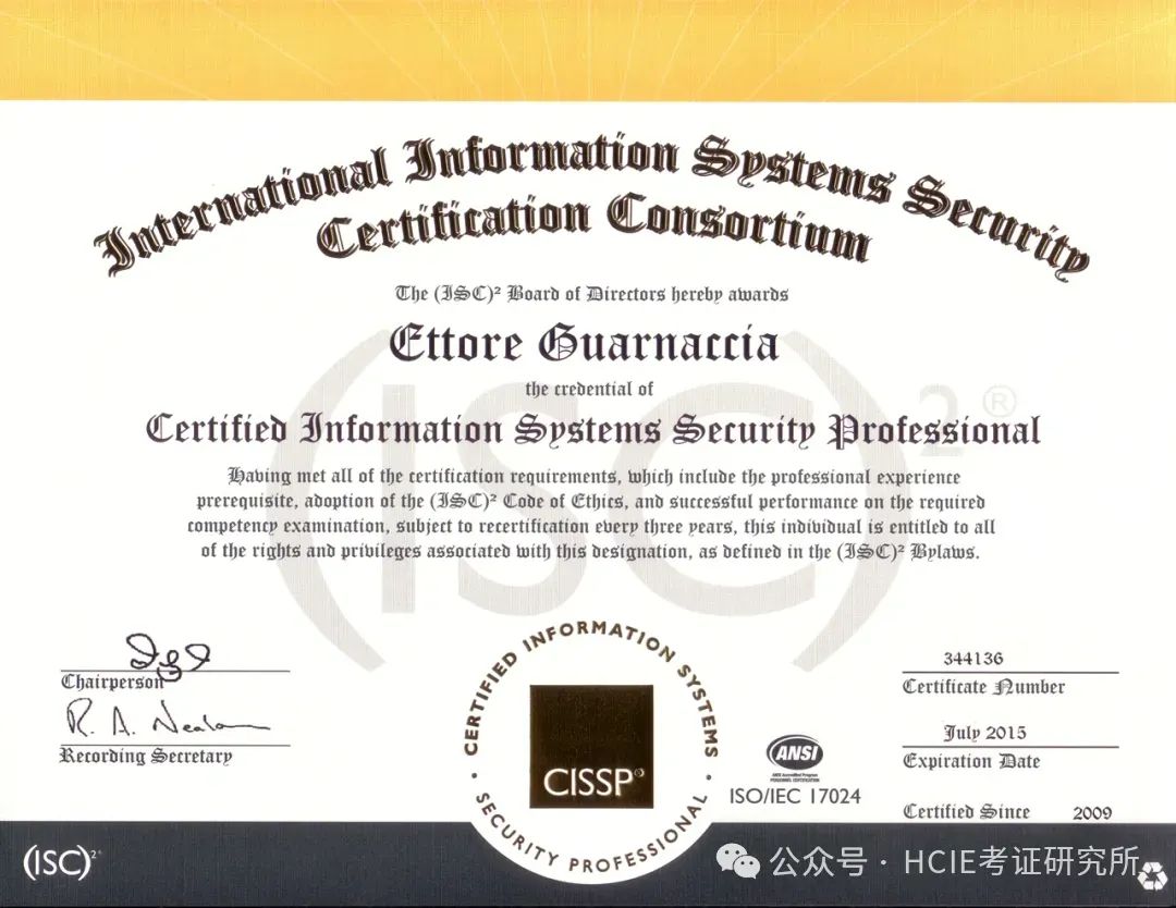 CISSP是由国际信息系统安全认证协会(ISC)²颁发的全球顶级 信息安全认证。 对于求职、评定高层次人才、投标加分等 多有助力。 它要求持证人具备在八个领域 (如安全和风险管理、资产安全、安全架构和工程等)的专业知识。 CISSP证书在全球范围内具有极高的认可度,是许多跨国公司和政府机构招聘信息安全专家时的首选资格。