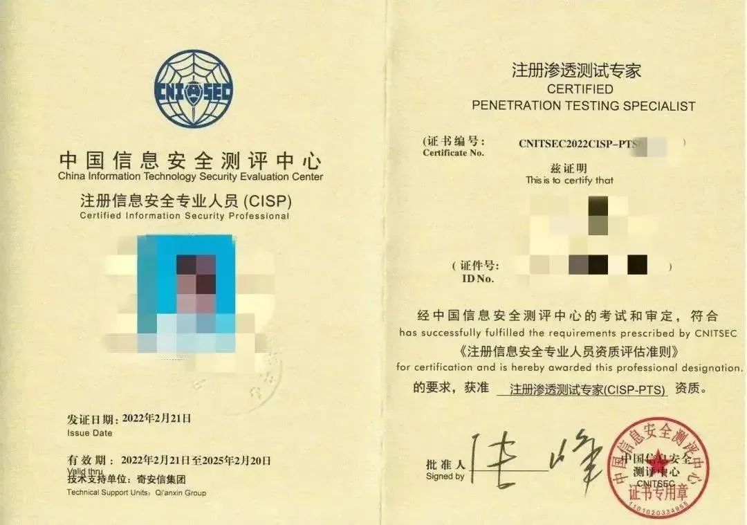 CISP-PTE,中文名为国家注册渗透测试工程师,可谓是CISP近年来最受欢迎的证书。 它是针对攻防专业领域实施的资质考试,是国内首个也是唯一的渗透测试领域的权威认证 ,因此受到业内的广泛认可,非常具有权威性和含金量。