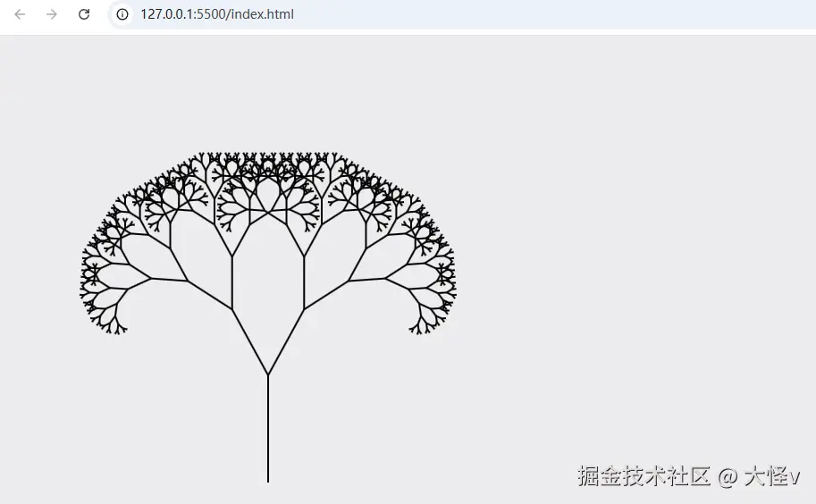 但理论上,可以绘制任何几何图形了,这样,简简单单搞个分形树。