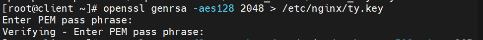 创建私钥文件: /etc/nginx/ty.key,命令如下,并设置密码