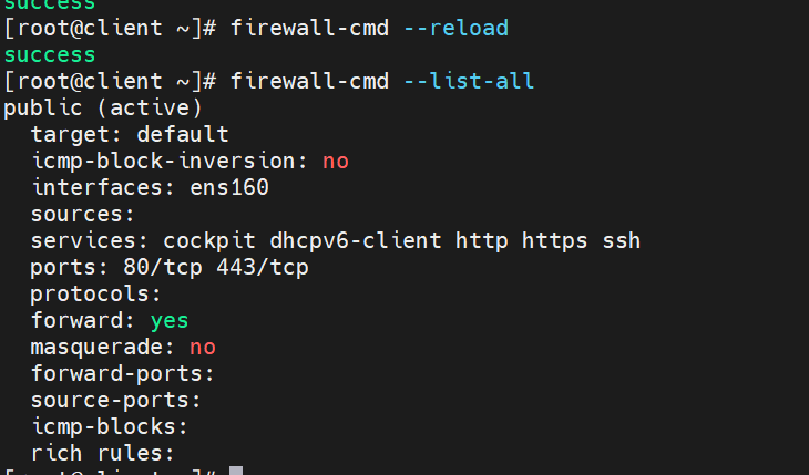 重载配置,并查看当前区域,http服务和https服务已放行通过