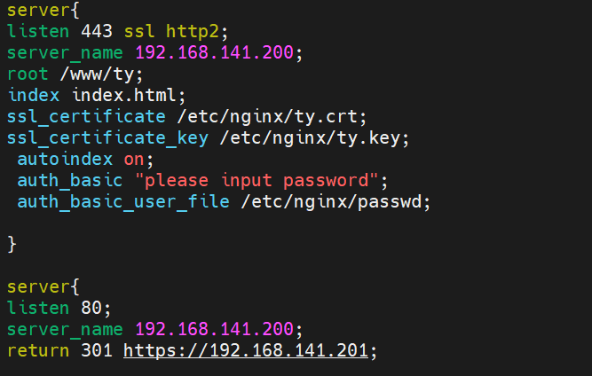 nginx子配置目录下,创建ip200.conf文件,配置本机192.168.141.200的网站,可用http和https协议访问