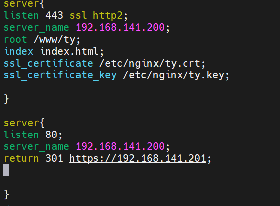 配置两个文件:证书文件:/etc/nginx/ty.crt 私钥文件: /etc/nginx/ty.key