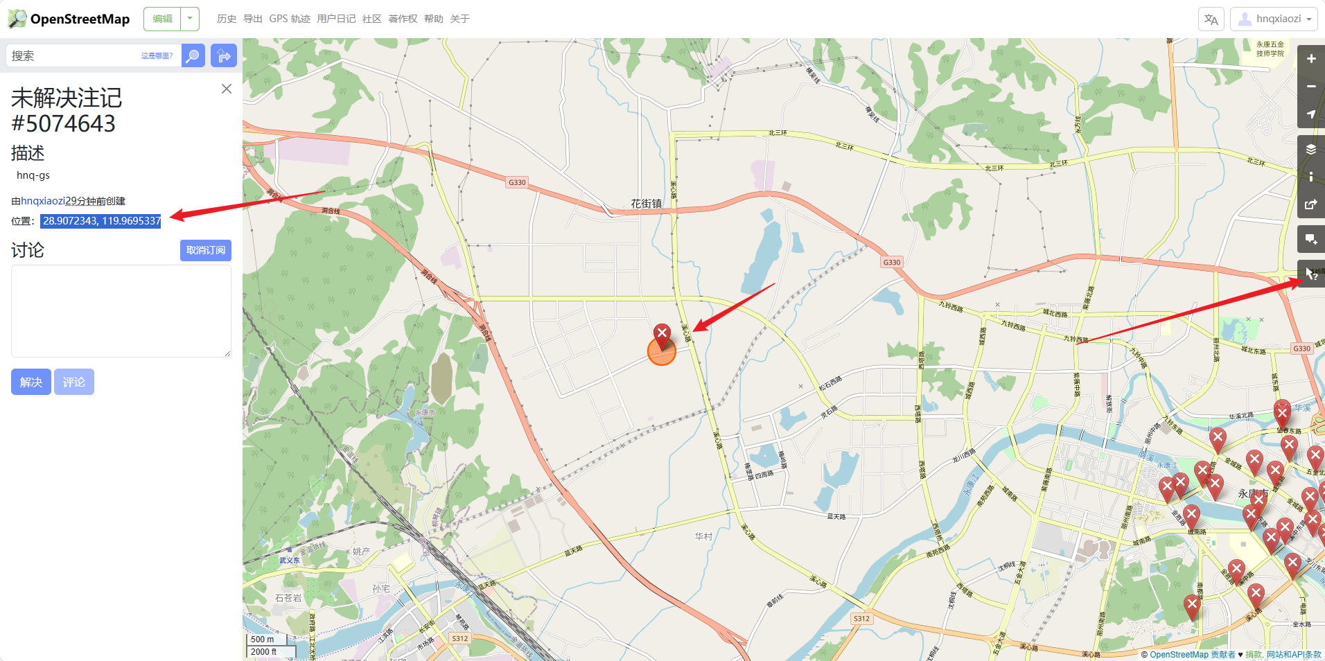 最后我们只需要更换经纬度就好了,那么经纬度也可以去找到。就是去openstreetmap官网。不过这里需要魔法。