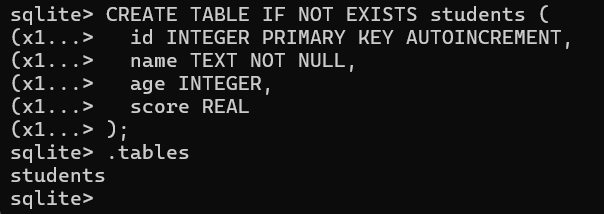 执行后会以表格形式显示结果(因之前启用了 .mode column 和 .header on)。