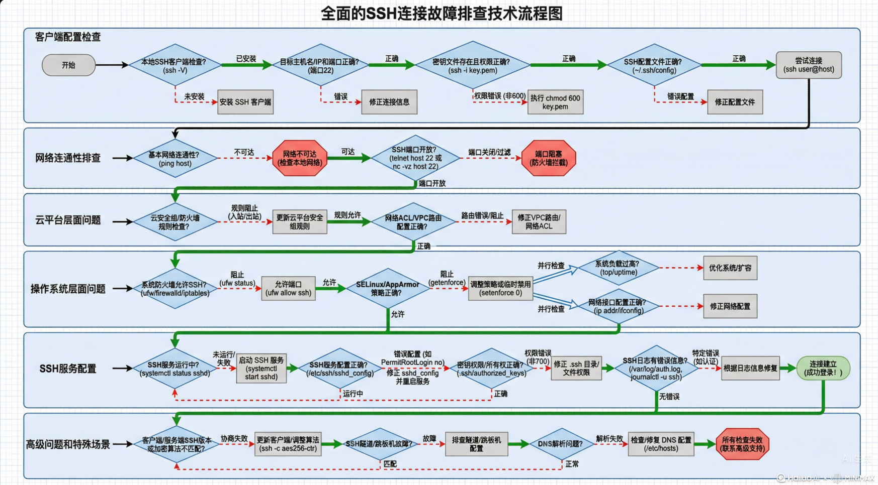 服务监听:SSH 服务启动了吗?系统防火墙拦了吗?
