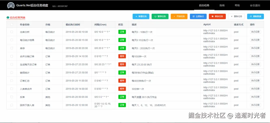 - 文章简介: Quartz.NetUI 是一个基于 .NET Core 和 Quartz.NET 的定时任务管理系统,结合 Vue 前端技术,提供了直观、易用的界面来管理定时任务。几乎没有上手难度,不依赖数据库,只需在界面做简单配置。