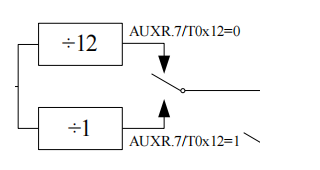 - 对应条件:图中AUXR.7/T0x12=1(AUXR 寄存器第 7 位设为 1)