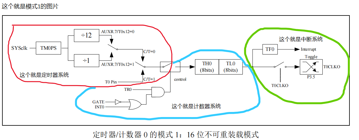 - 功能:这是STC89C52 新增的高速分频方式------ 系统时钟不做分频,直接作为定时器 0 的计数脉冲