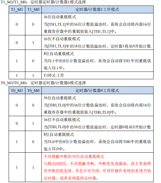 - 模式 3:两个 8 位计数器 (我们只要掌握模式1就可以,剩下就不太常用)