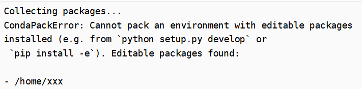 conda pack -n xxx -o xxx.tar.gz --ignore-editable-packages